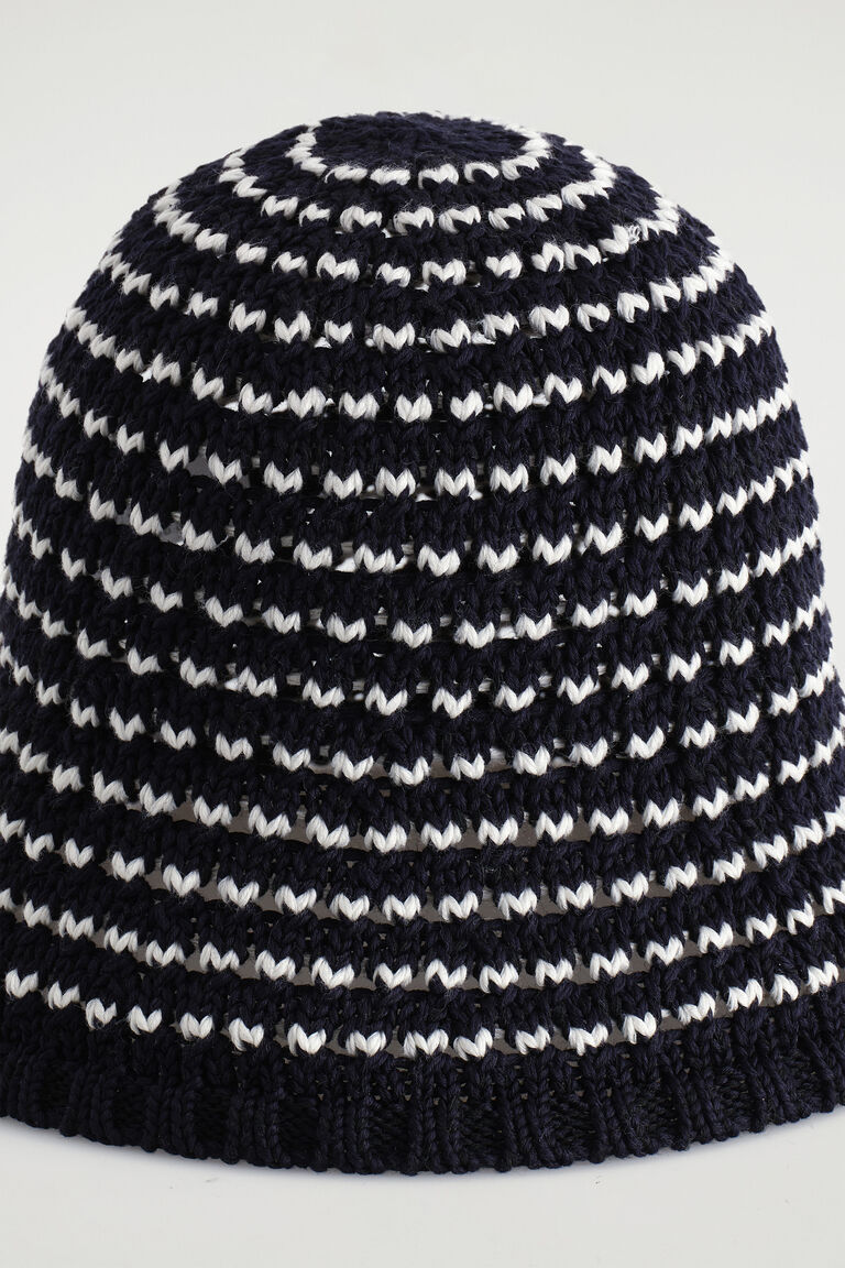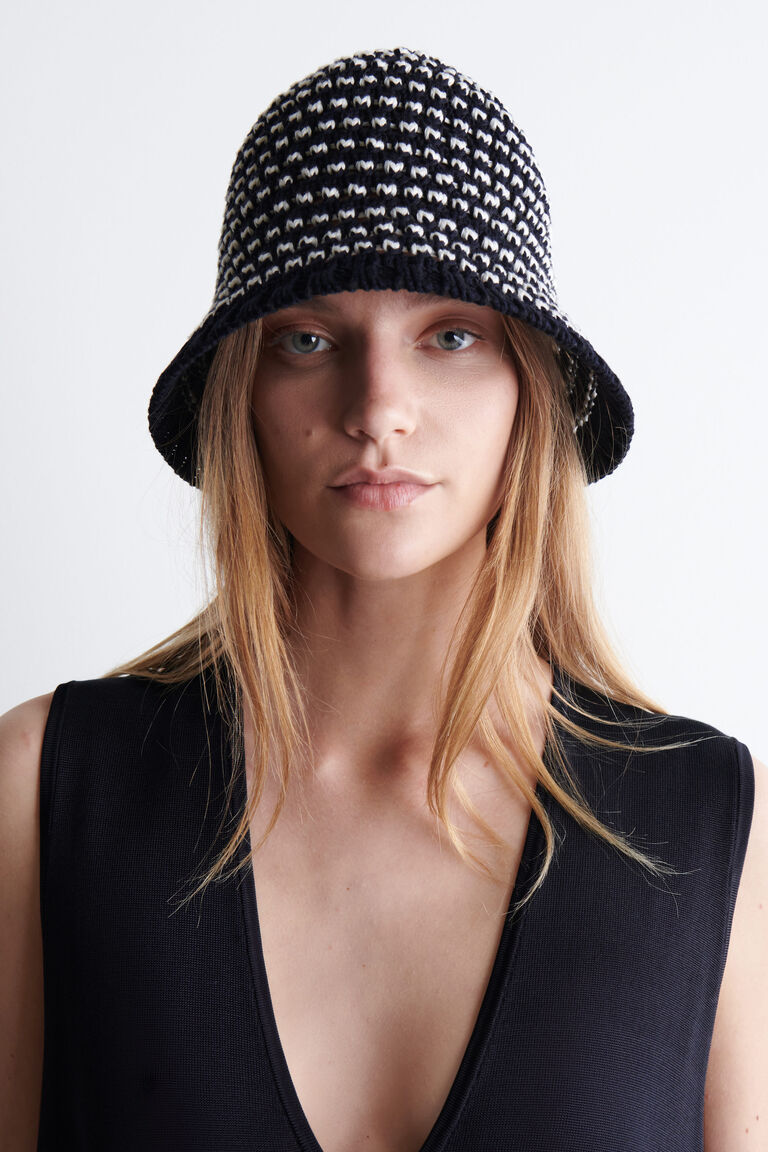 Crochet-knitted from a cotton blend, this bucket hat has an open weave so it's breathable on balmy days and comes in a fresh two-tone palette. It's the perfect accessory for summer.