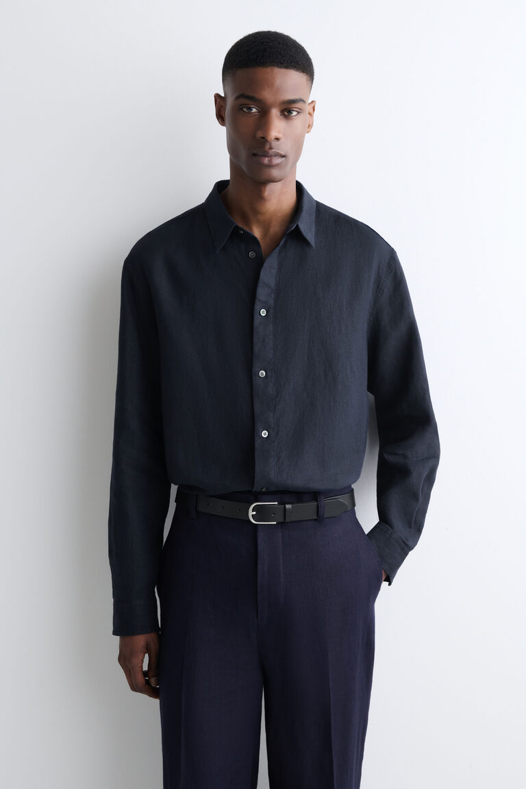 This airy long-sleeved shirt promises to be a wardrobe staple throughout the warmer months. Offered in an emerald-green hue, it's crafted from naturally breathable linen and tailored in a relaxed shape that won't cling in balmy weather.