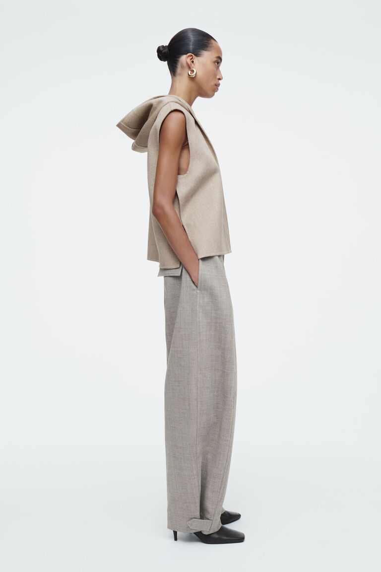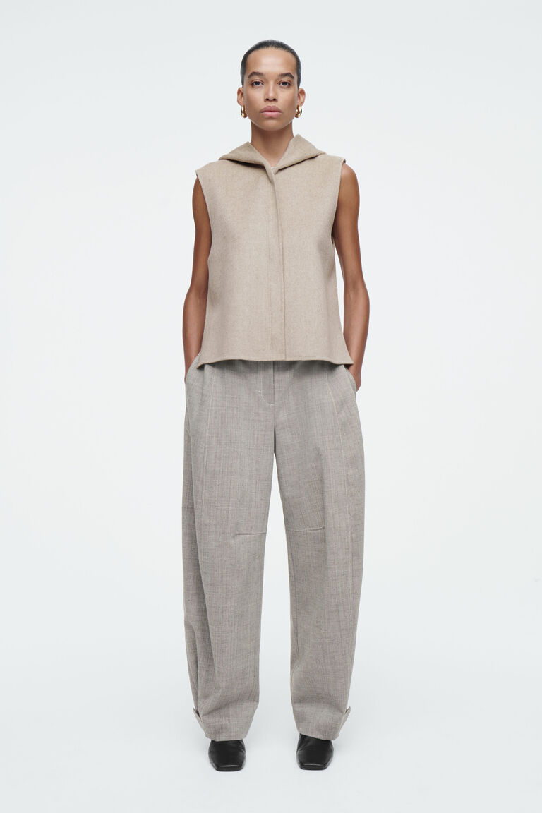 This modern hybrid gilet is designed with an enveloping hood, brushed silver-tone zip and high side slits that offer freedom of movement and layering potential. It's cut from a soft RWS wool and TENCEL™ Lyocell blend that's double-faced for structure and longevity.