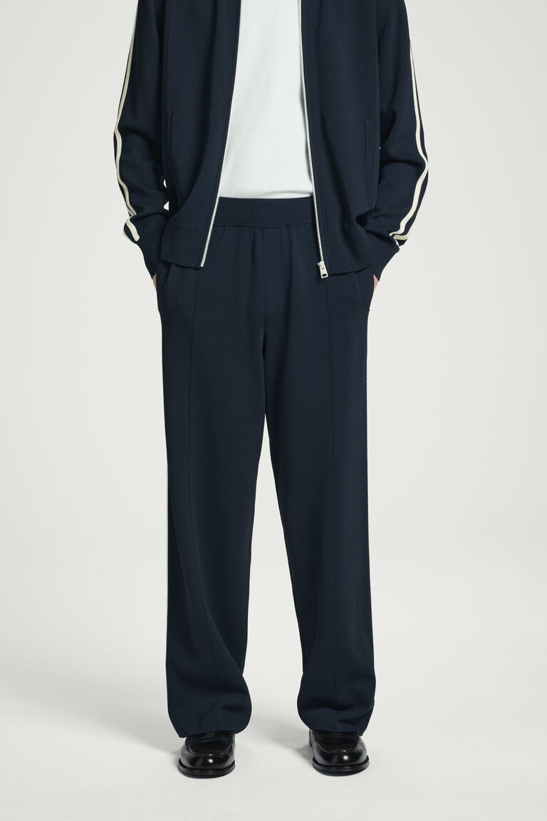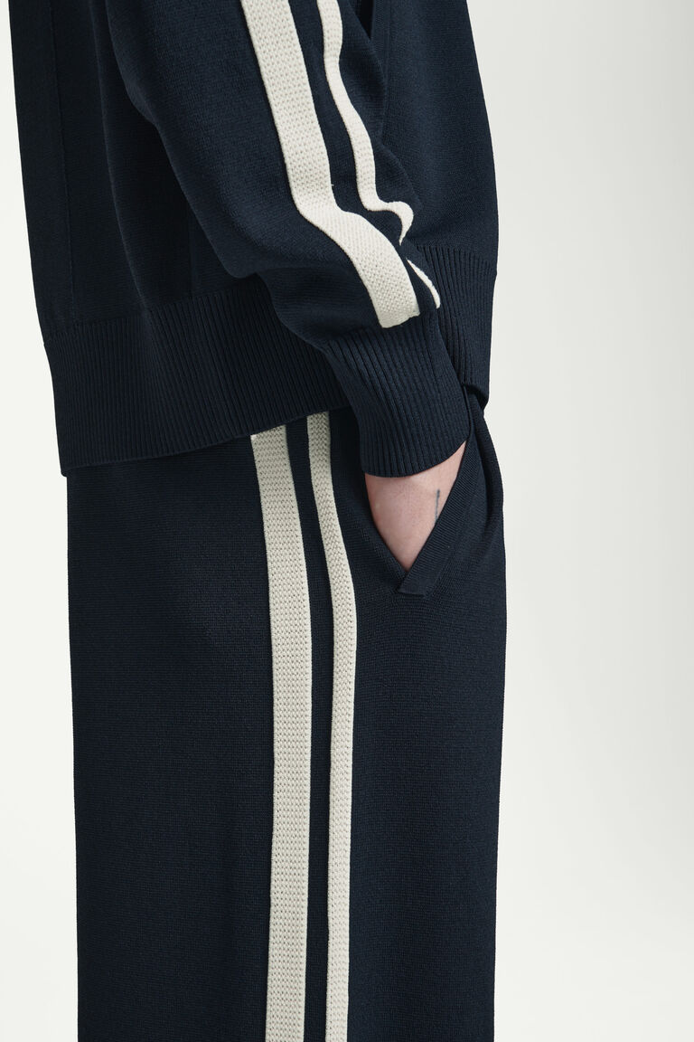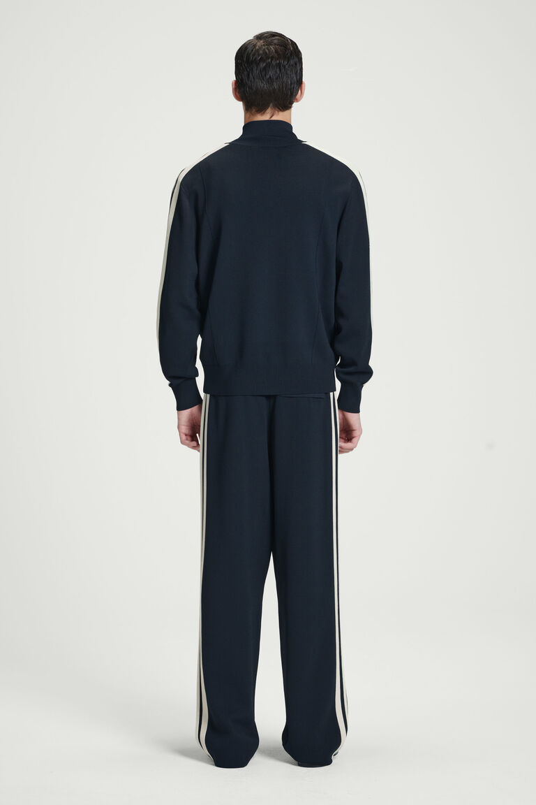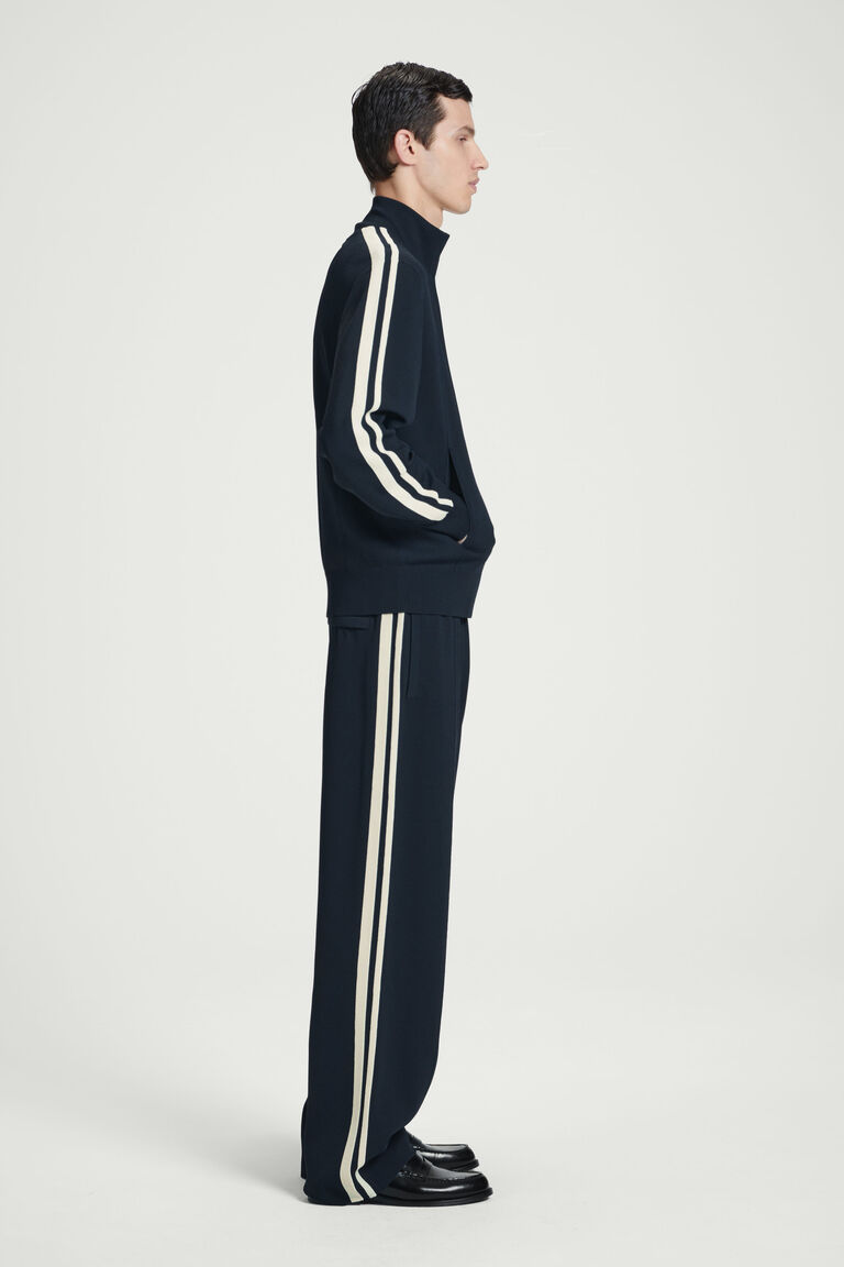 This season, retro trackwear informs the casual pieces in the COS menswear collection. Offered in a black and cream palette, these Milano-knit joggers adopt sporty design codes with their elasticated waistband and contrasting mesh stripes that border each leg. Lean into their leisurewear inspiration by styling them with the coordinating track jacket.