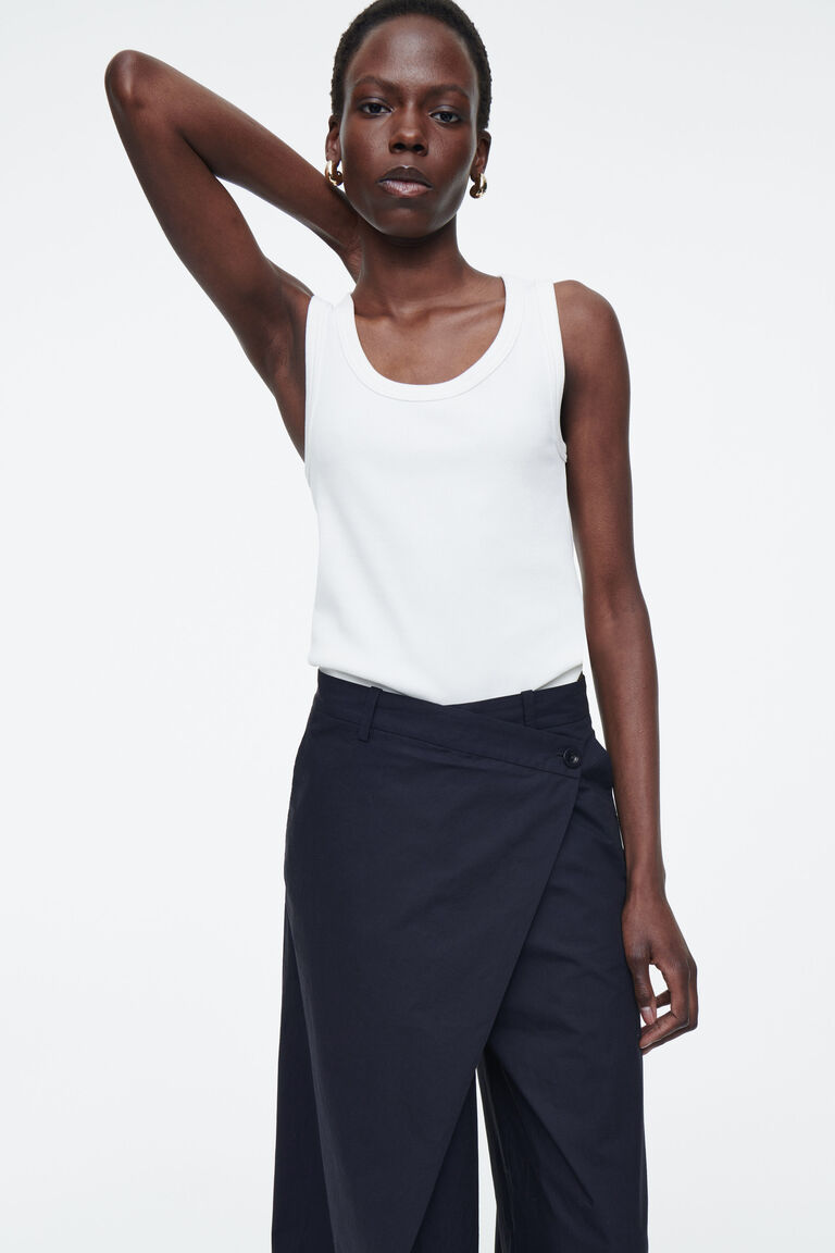 Asymmetric silhouettes lend a fresh perspective to our wide-leg trousers this season. Offered in a refined beige hue, this pair is crafted from soft Pima cotton and has a modern wrap-front waist that fastens with a tonal button. Balance the relaxed shape by styling them with a tank top.