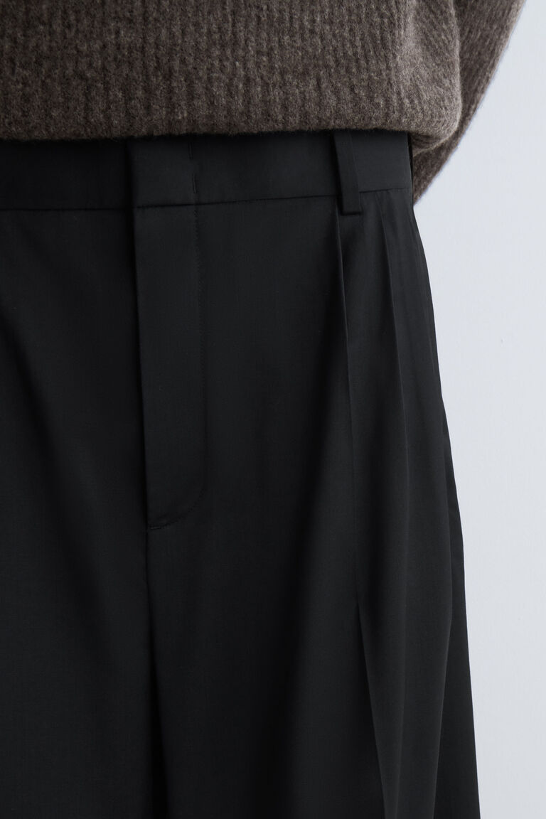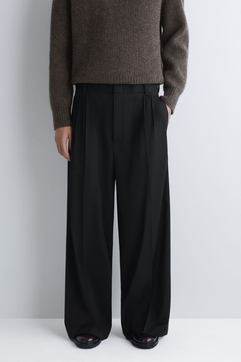 PLEATED WOOL RELAXED-FIT WIDE-LEG TROUSERS