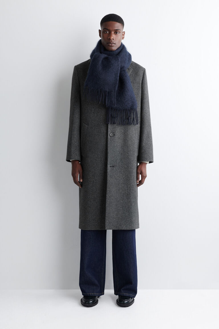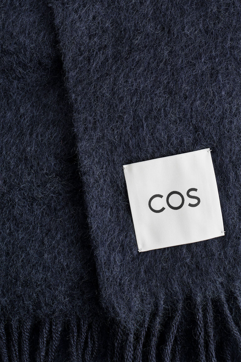 Designed for the coolest days of the year, this scarf is knitted from a mohair and wool blend that has a softly brushed texture. It's finished with fringed ends and has a COS logo patch on one side.