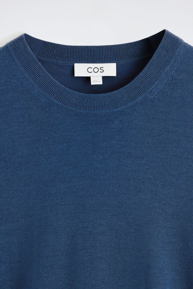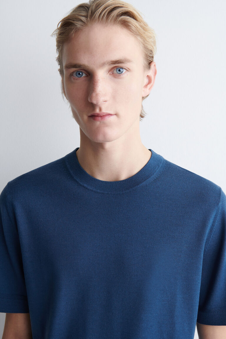 The menswear team are experts at creating perfected wardrobe staples. Offered in classic navy, this T-shirt is knitted from premium merino wool and designed with French seams on each shoulder and ribbed trims that hold their shape. You'll reach for it season after season.