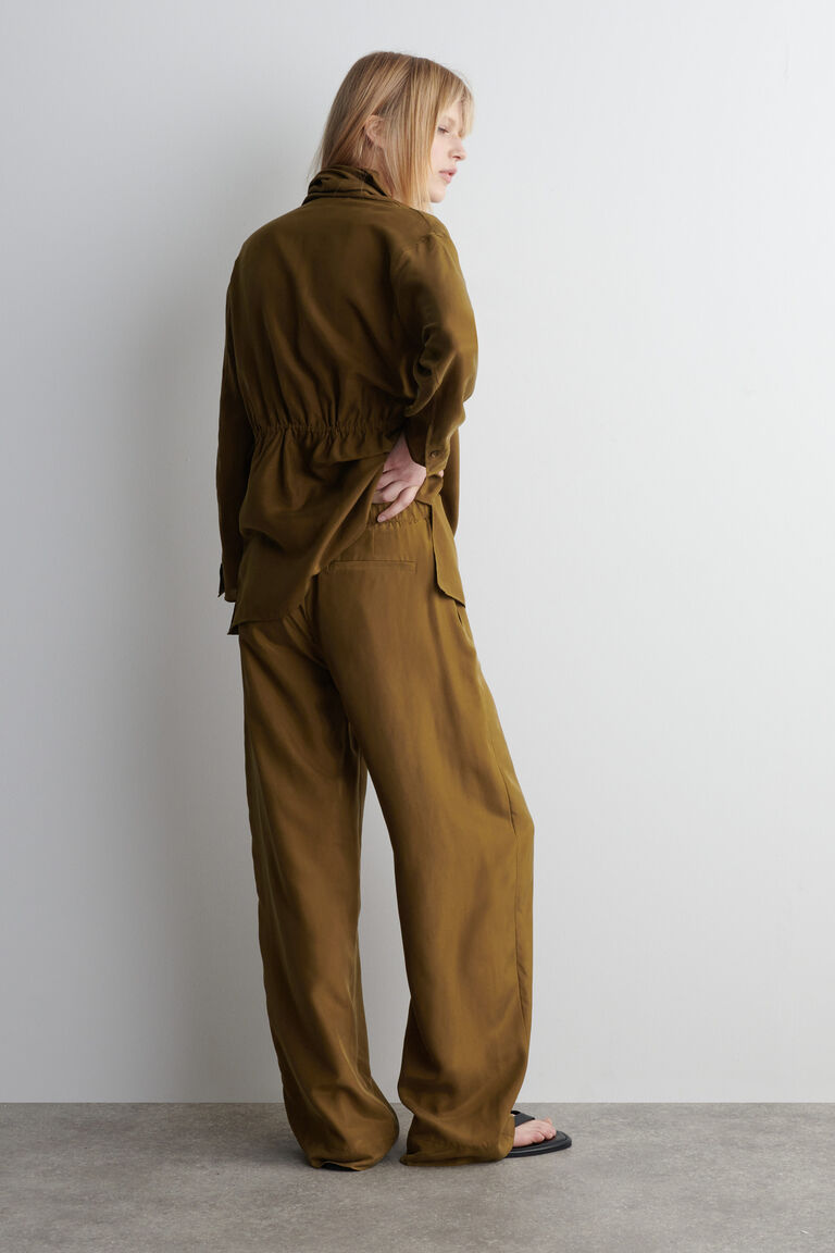 Made from fluid mulberry-silk crepe, these trousers are cut in a flowing straight-leg silhouette and feature an elasticated waist that cinches using the internal drawstring. They come in a rich midnight hue that will style well with a palette of neutrals.