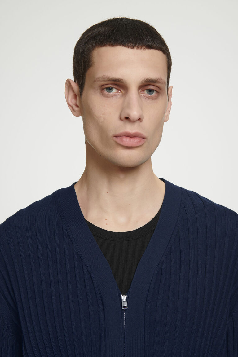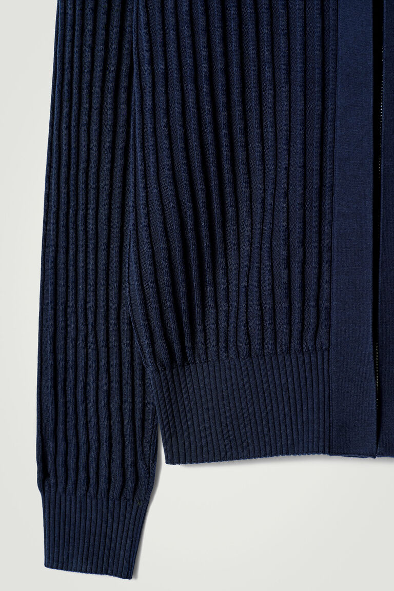 The COS SS25 runway collection builds on the house codes of lasting design and exceptional craftsmanship. Rendered in a rich midnight-navy tone, this polished cardigan is made from a blend of lustrous mulberry silk and soft cotton that's ribbed for a tactile finish. It's cut in a classic shape and features a high V-neckline and concealed silver-tone zip.