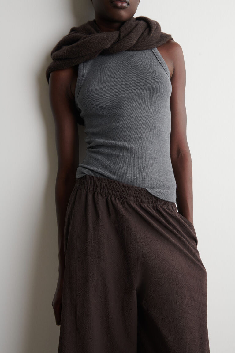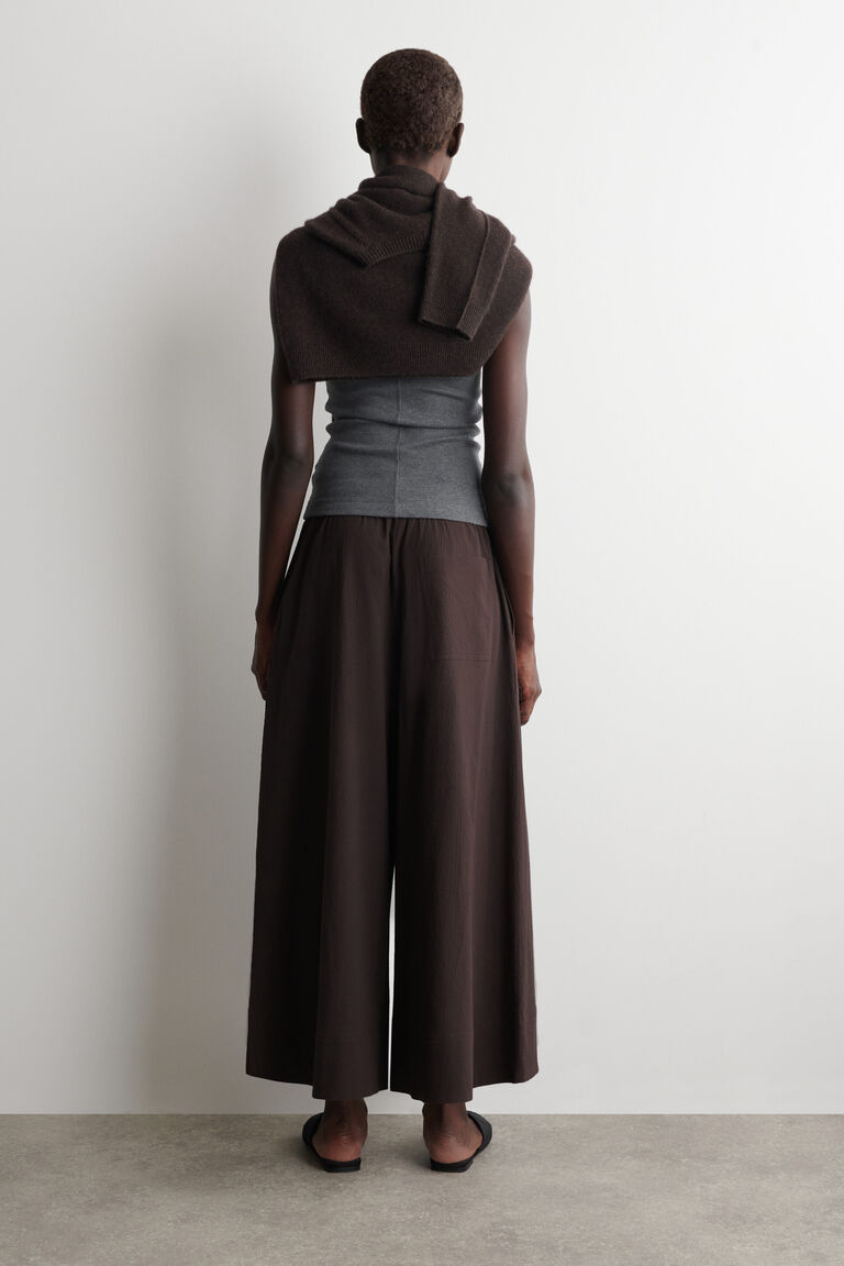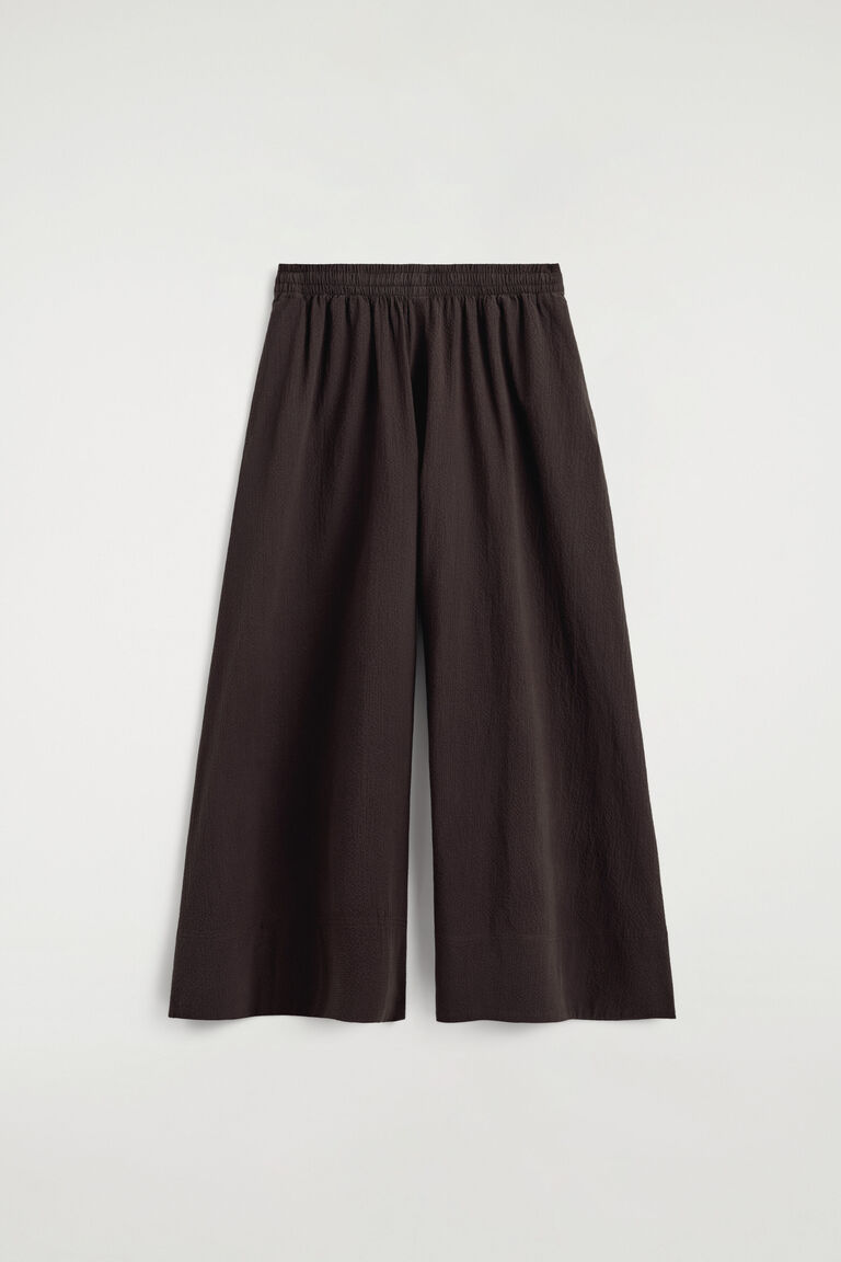 A prelude to the warmer months, these culottes are crafted from airy cotton in a subtle seersucker texture. They're cut in a voluminous wide-leg shape and feature an elasticated waist with internal drawstrings for a comfortable fit. Style them with sandals or mules.
