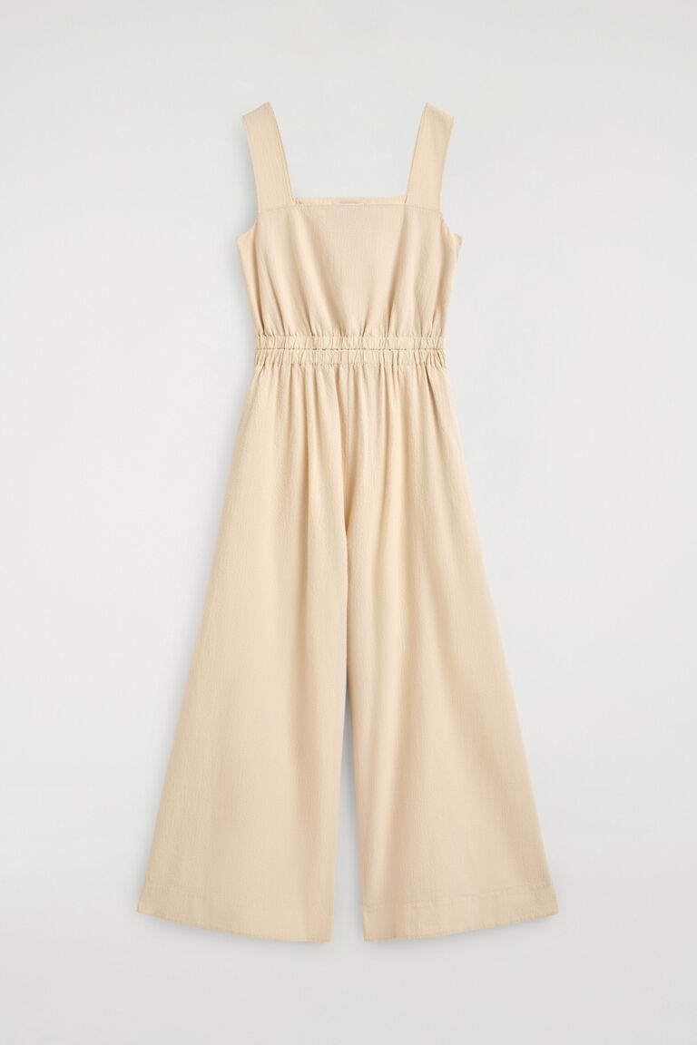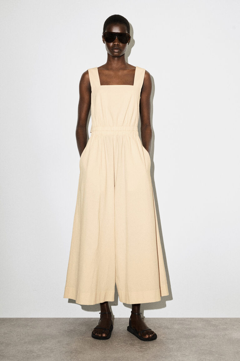 This effortless jumpsuit lends itself to laid-back weekends. Crafted from textured cotton-blend seersucker, it's cut in a voluminous wide-leg shape and has a gathered waist and open back. Style it over a T-shirt for a layered look.