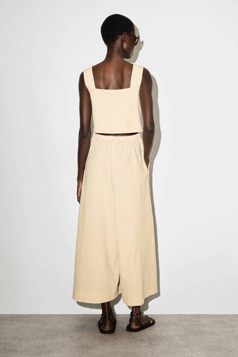 - OPEN-BACK SEERSUCKER WIDE-LEG JUMPSUIT