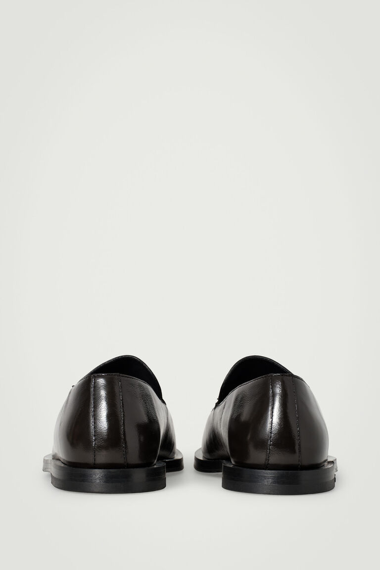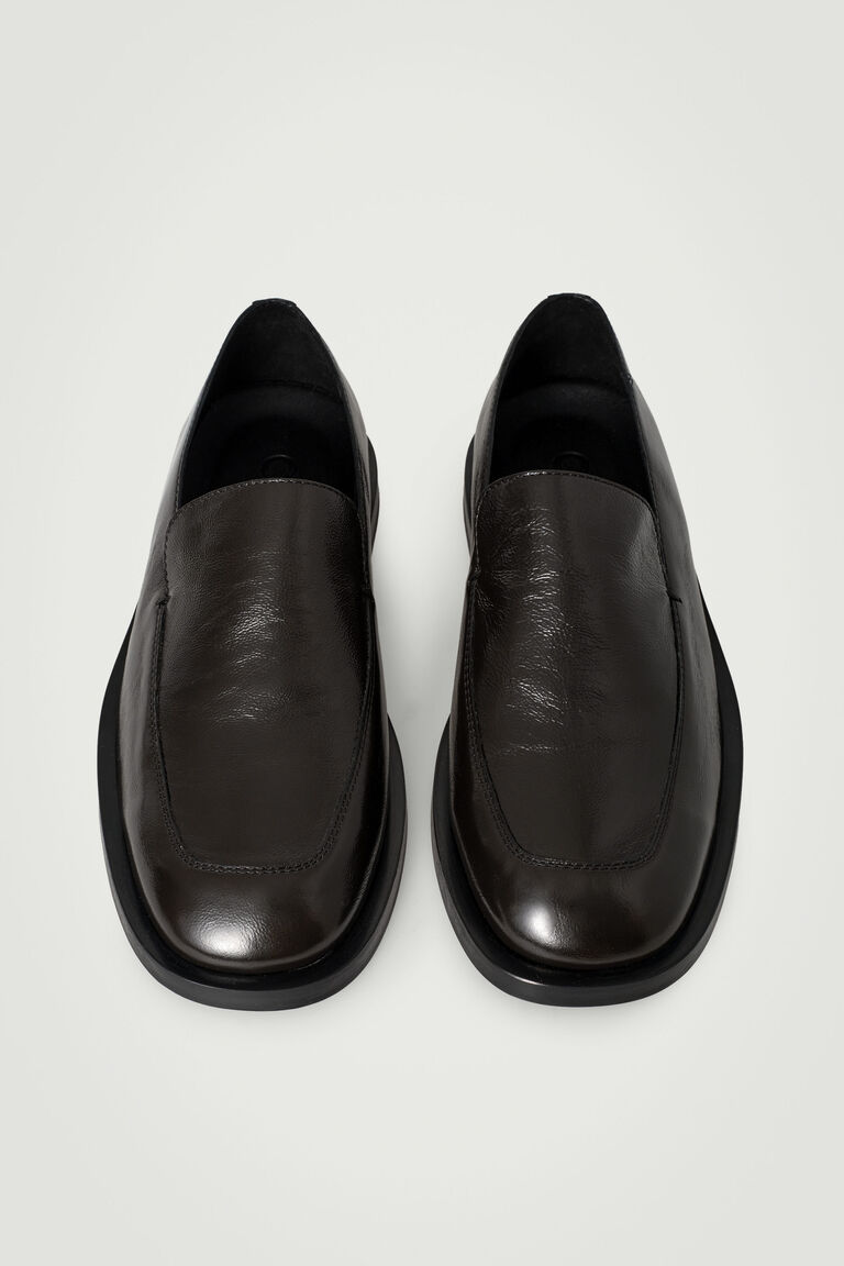 The COS SS25 runway collection builds on the house codes of lasting design and exceptional craftsmanship. Perfected wardrobe classics like these polished loafers are central to the capsule. They're crafted from glazed chrome-free leather in an earthy deep-khaki tone and feature softly rounded toes and stacked leather soles.