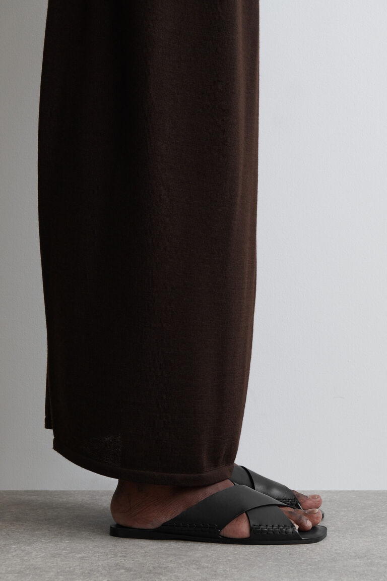 Refined silhouettes and impeccable craftsmanship lead the footwear collection this season. These modern sandals are made from supple chrome-free leather with arched crossover straps and cloud-like padded insoles. They're finished with intricate hand-stitched detailing at either side.