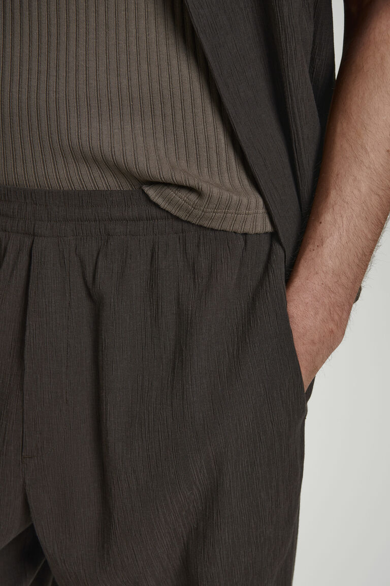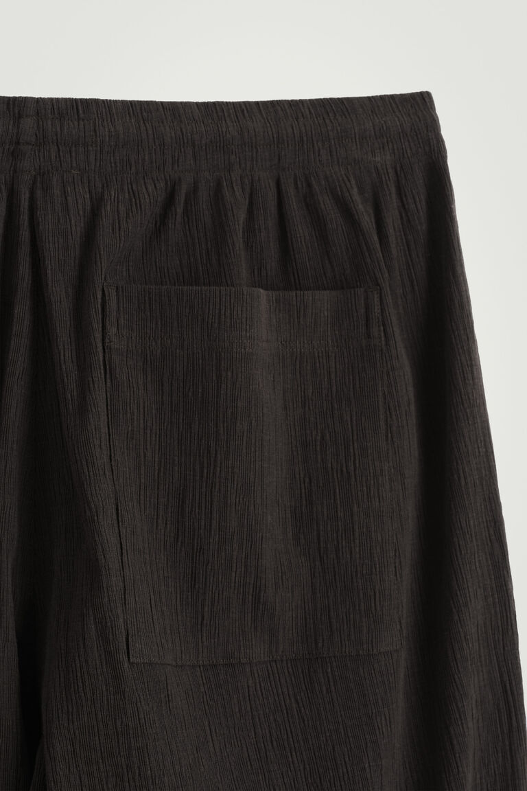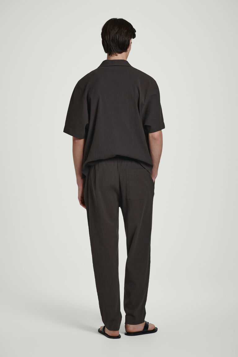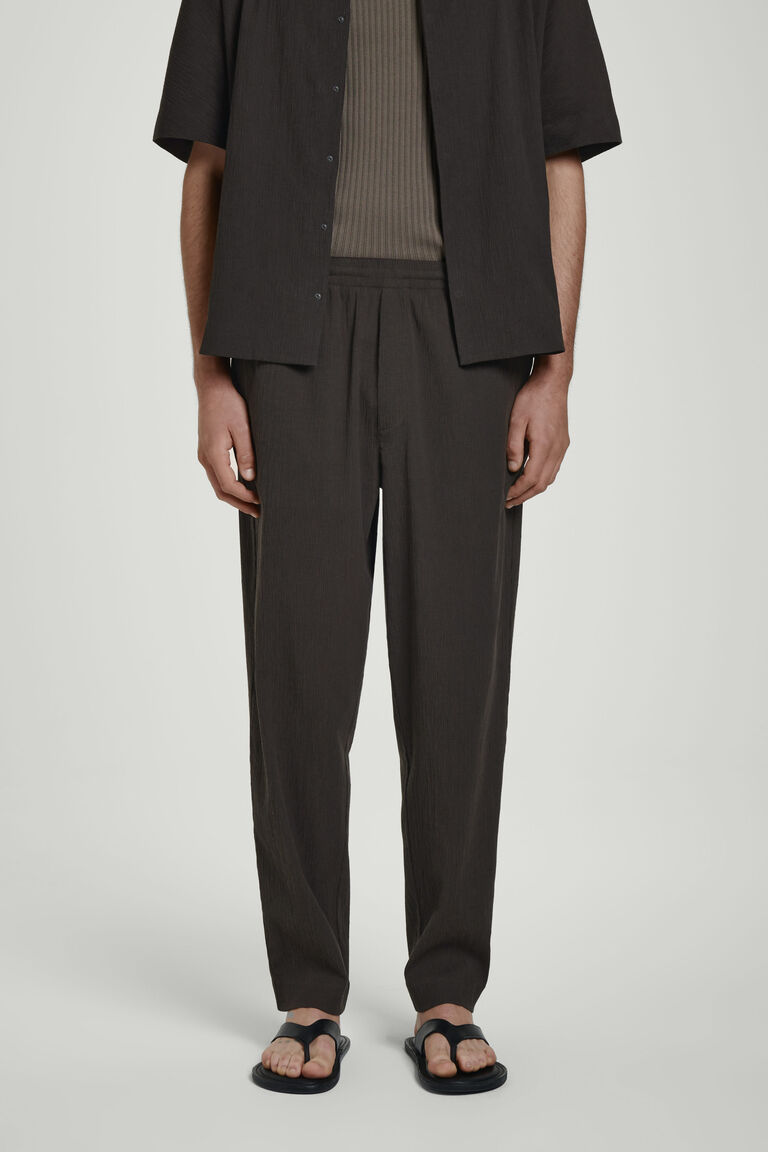 These modern trousers lend subtle texture to the summer wardrobe. Offered in a rich espresso hue, they're made from crinkled cotton-blend jersey and feature an elasticated waistband and a number of pockets. Wear them as a set with the matching shirt.