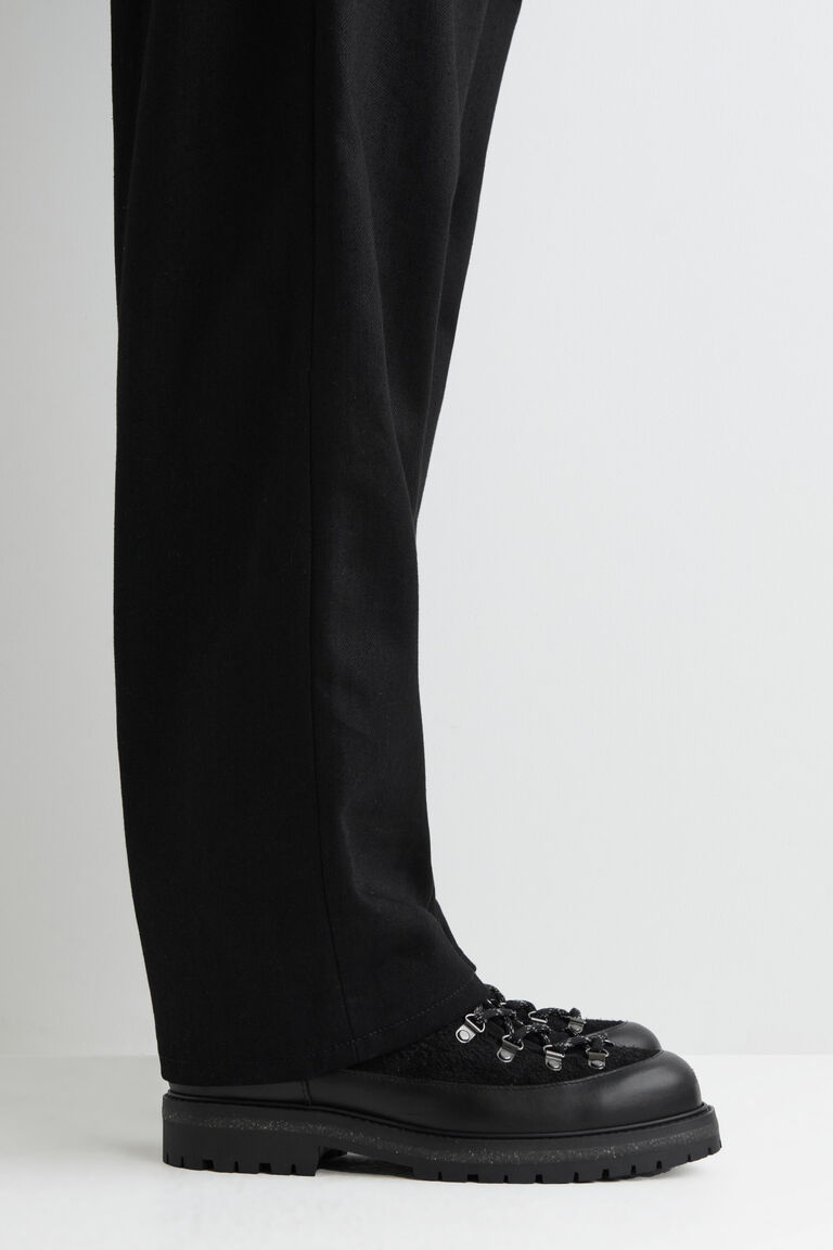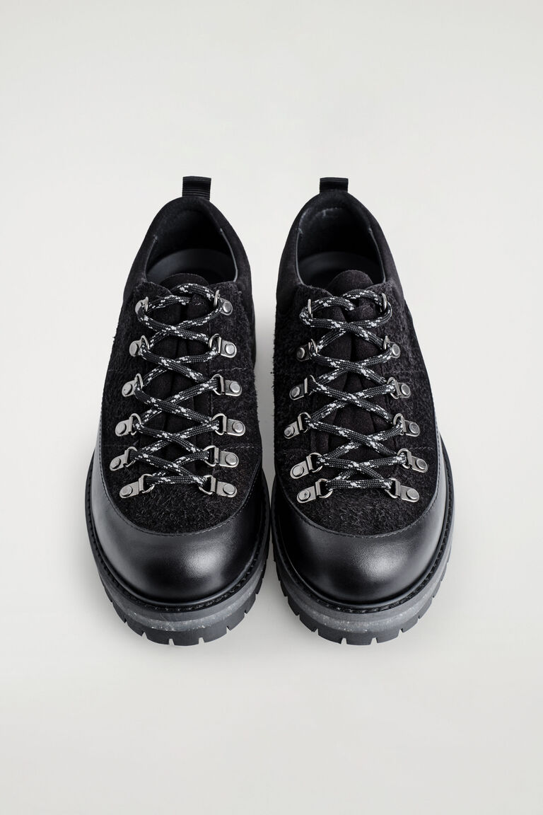 These hiking-inspired shoes are crafted from premium leather and brushed suede in versatile black. Polished yet practical, they're designed with chunky layered soles, padded ankles and substantial rope laces that are finished with reflective detailing. Style them with denim or chinos for days in the city.