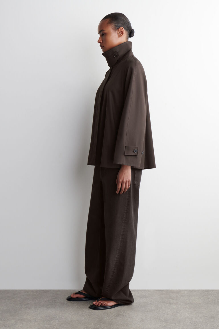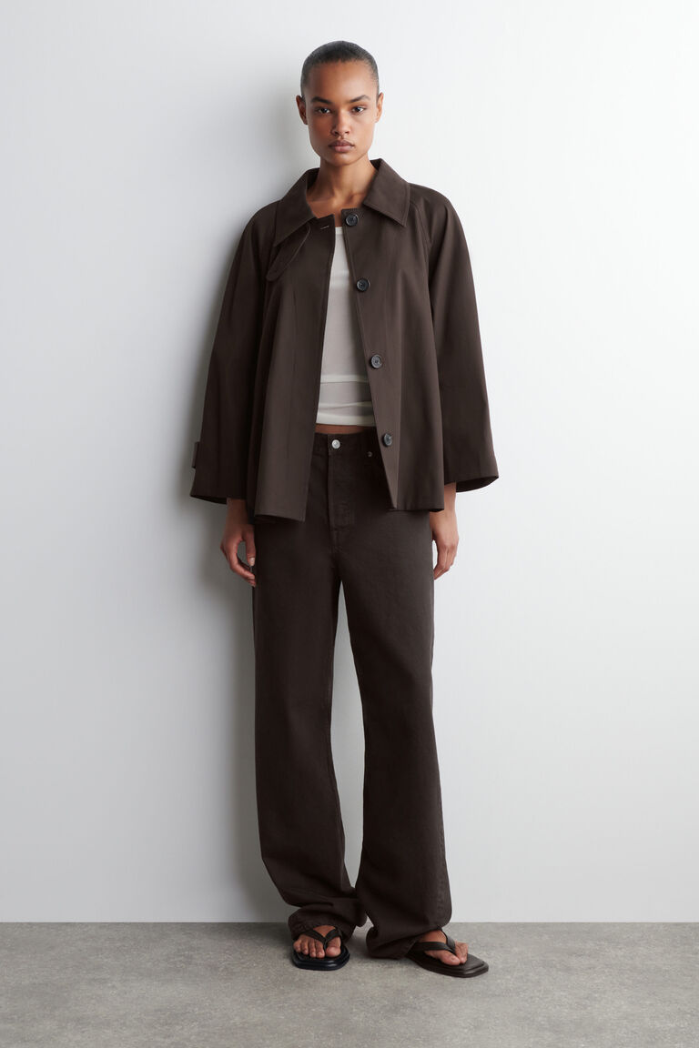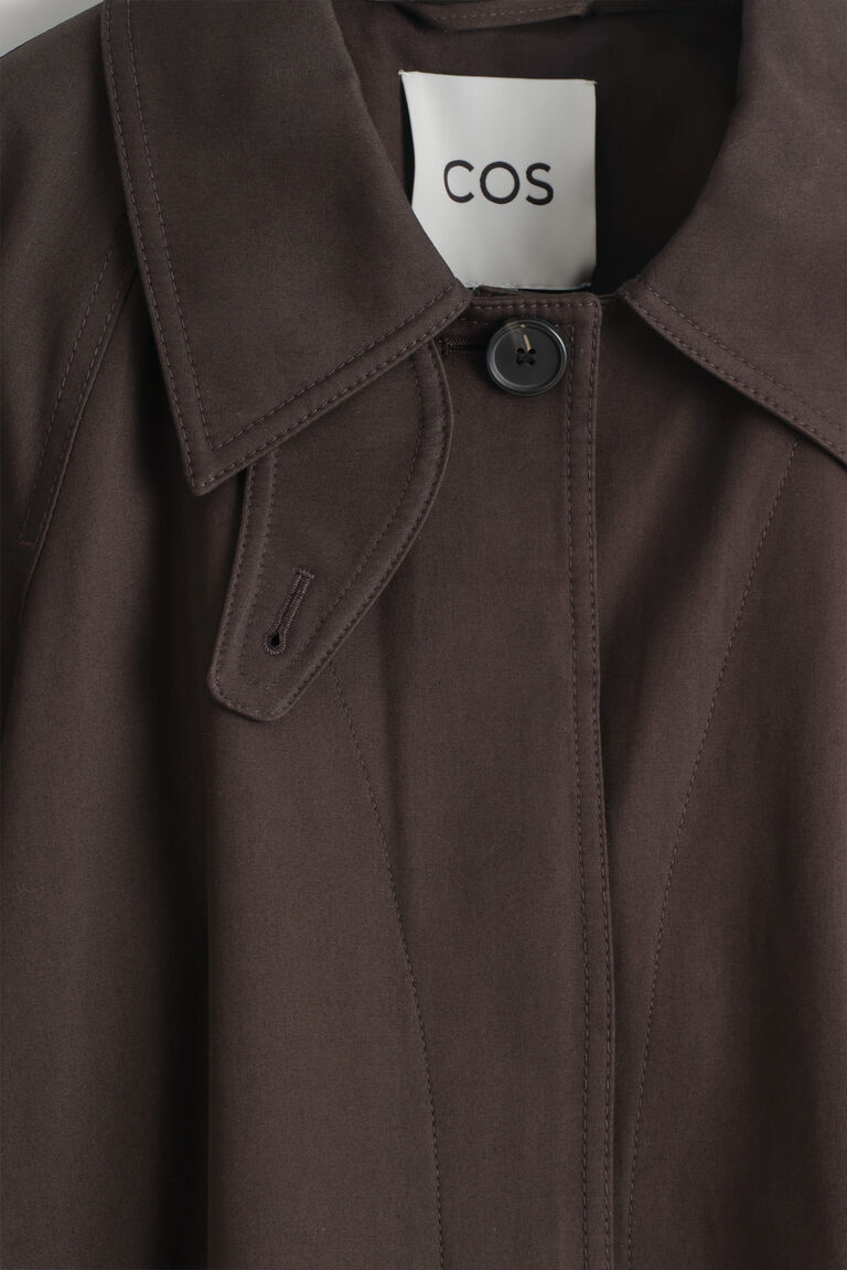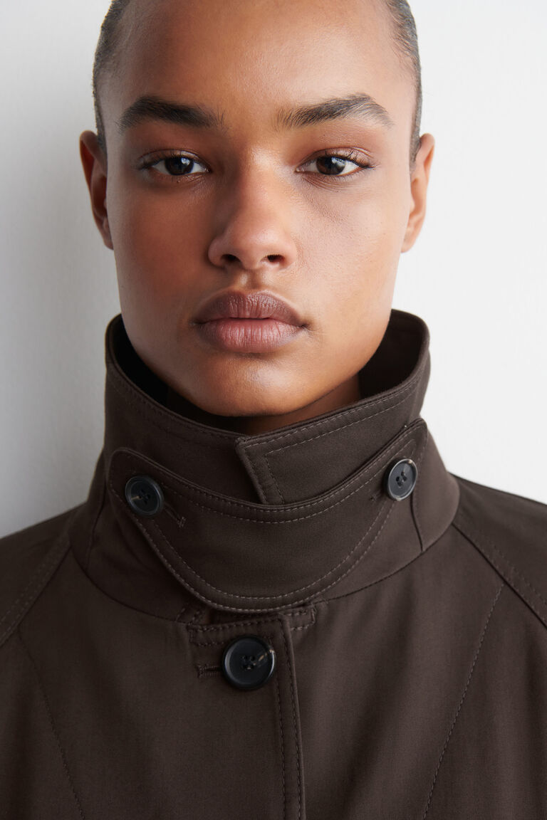This refined piece riffs on the classic trench. Crafted from soft cotton, it's cut in a modern A-line silhouette and features trademark design details, such as the buttoned throat latch and enduring beige tone. It's finished with a pointed collar and neatly concealed placket.