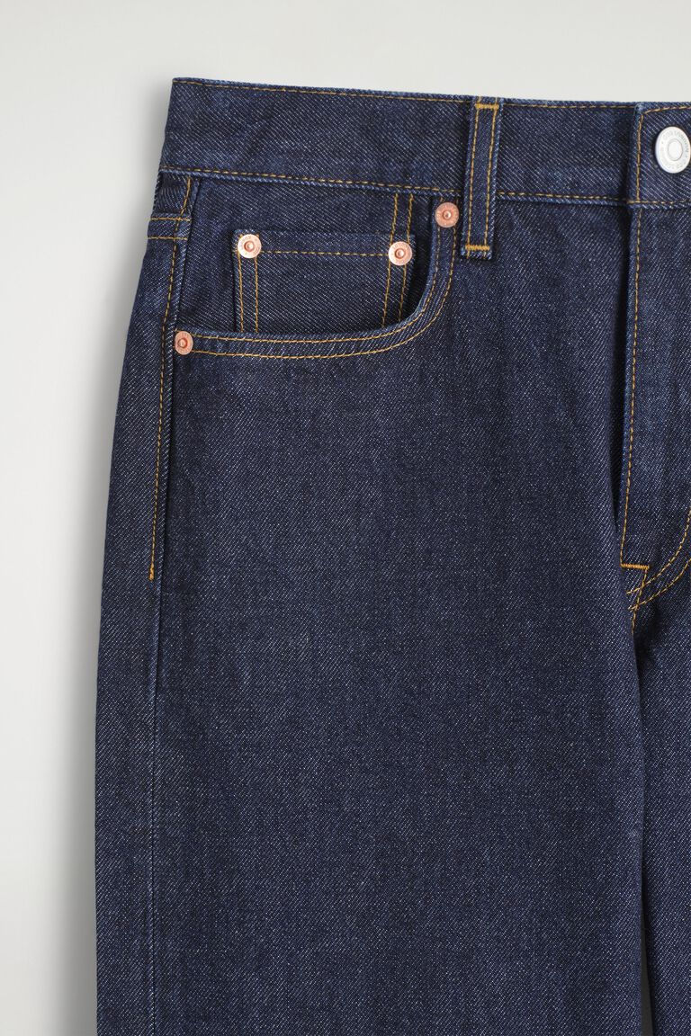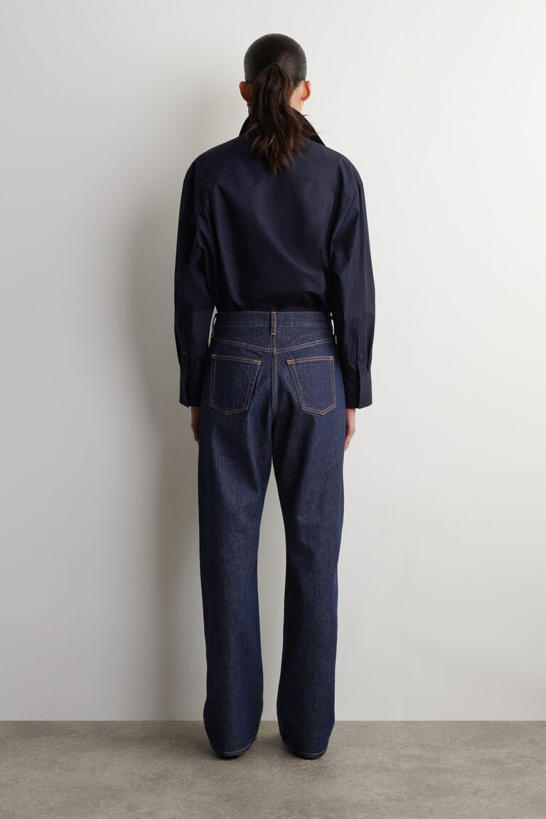 A classic, redefined: the Reprise jeans propose a considered take on a wardrobe signature. Cut in a timeless straight-leg shape, they're crafted from organic- and recycled-cotton denim that's washed an enduring dark-indigo tone and finished with tobacco topstitching.