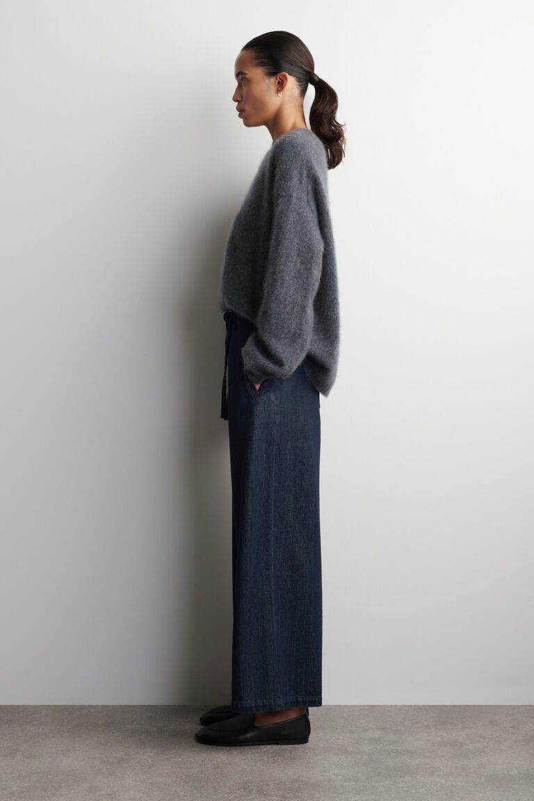 - CROPPED DENIM WIDE-LEG TROUSERS