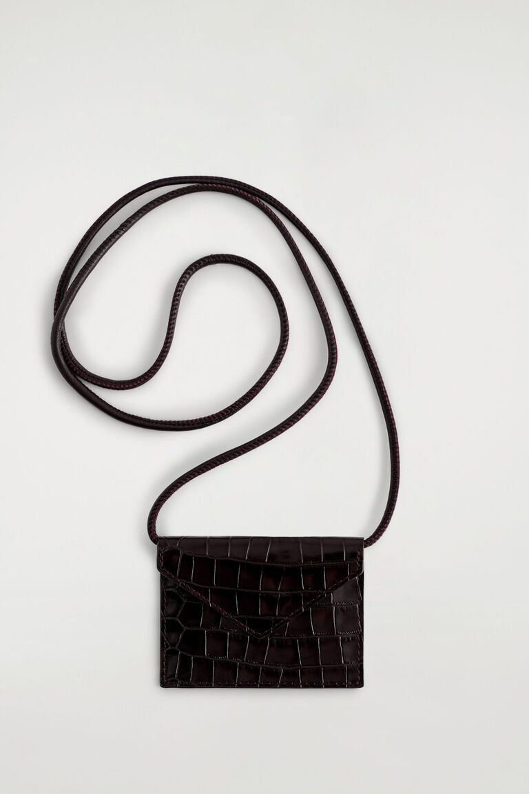 This beige cardholder offers a dynamic way of adding texture to your looks. It's crafted from premium crocodile-effect leather and designed with a secure press-stud closure and an extended strap so you can style it across the body.