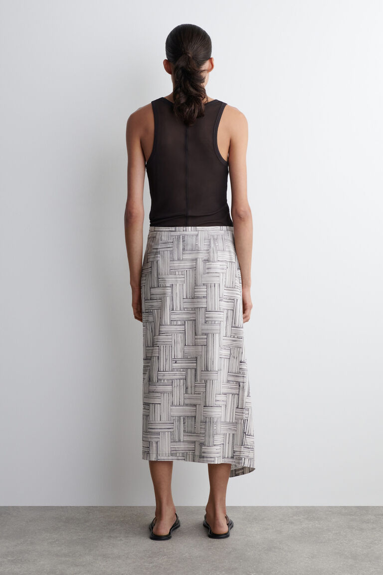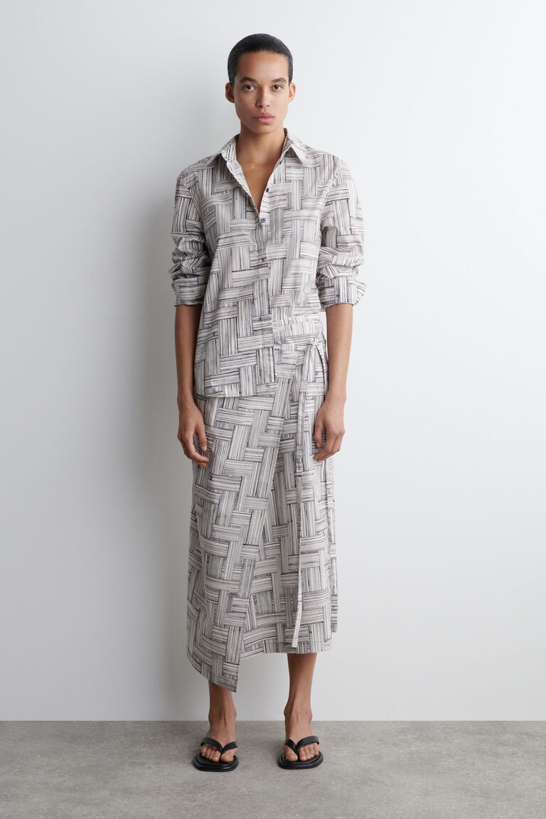 Crafted from soft cotton, this midi skirt is cut in a wrap silhouette that ties at one side. It's patterned with an in-house basketweave motif, carefully created by tracing the fine lines of a hand-woven paper blanket. Style it with the matching shirt.
