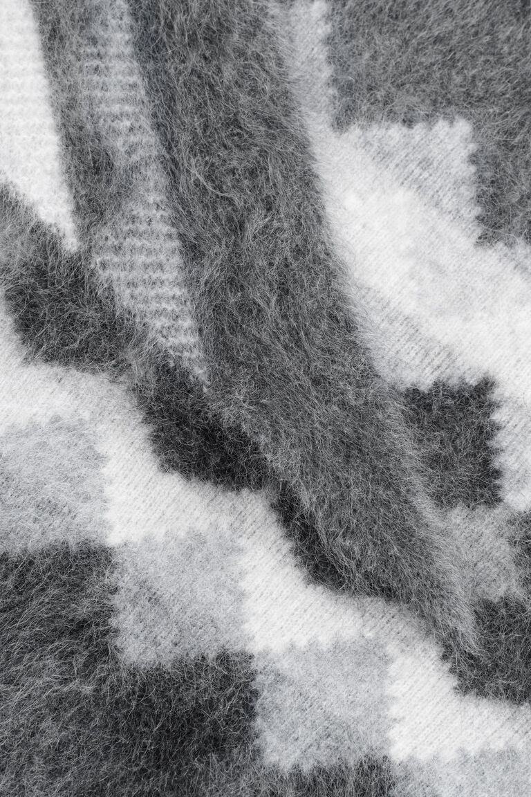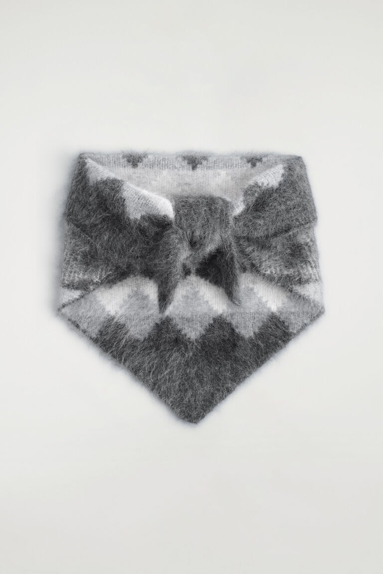 The womenswear team propose a modern take on heritage for Autumn Winter 2025. Offered in a tonal-grey palette, this triangle scarf is crafted from softly brushed cashmere and intarsia-knitted using an intricate Fairisle technique. Layer it over the matching jumper.