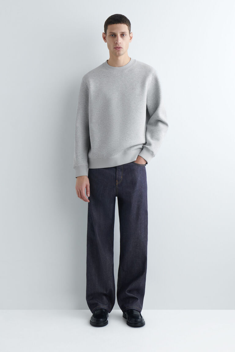 Laid-back shapes and supremely soft fabrics lead a wardrobe that's primed for the weekend. This modern sweatshirt is cut in a relaxed fit and crafted from spongy cotton-blend scuba with finely ribbed trims. Style it with classic denim.