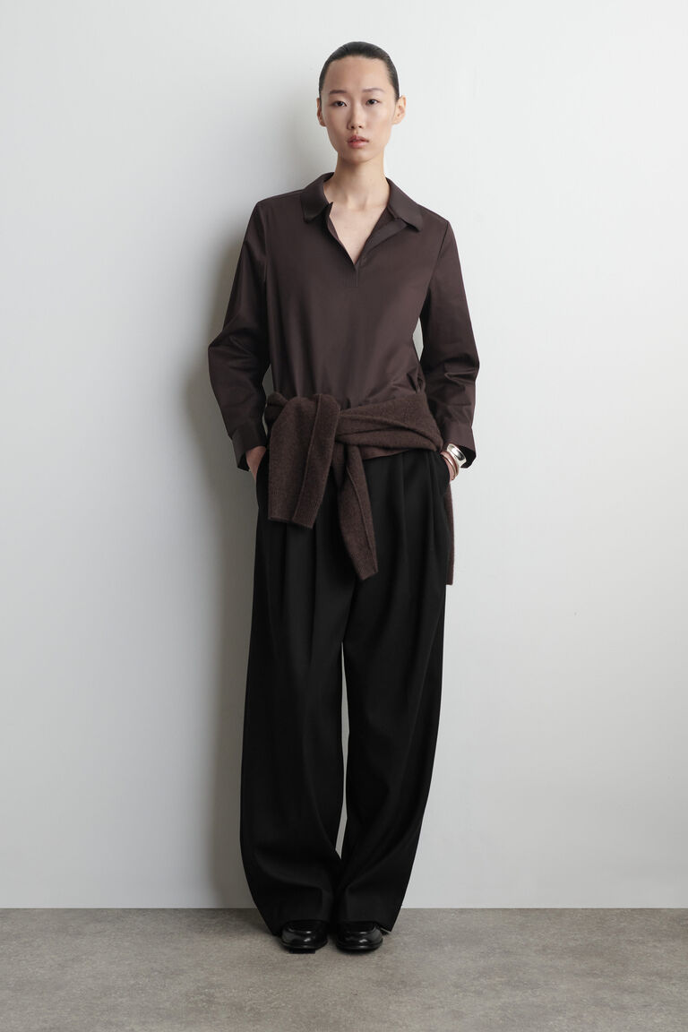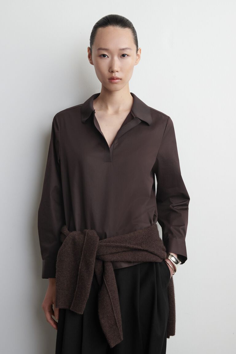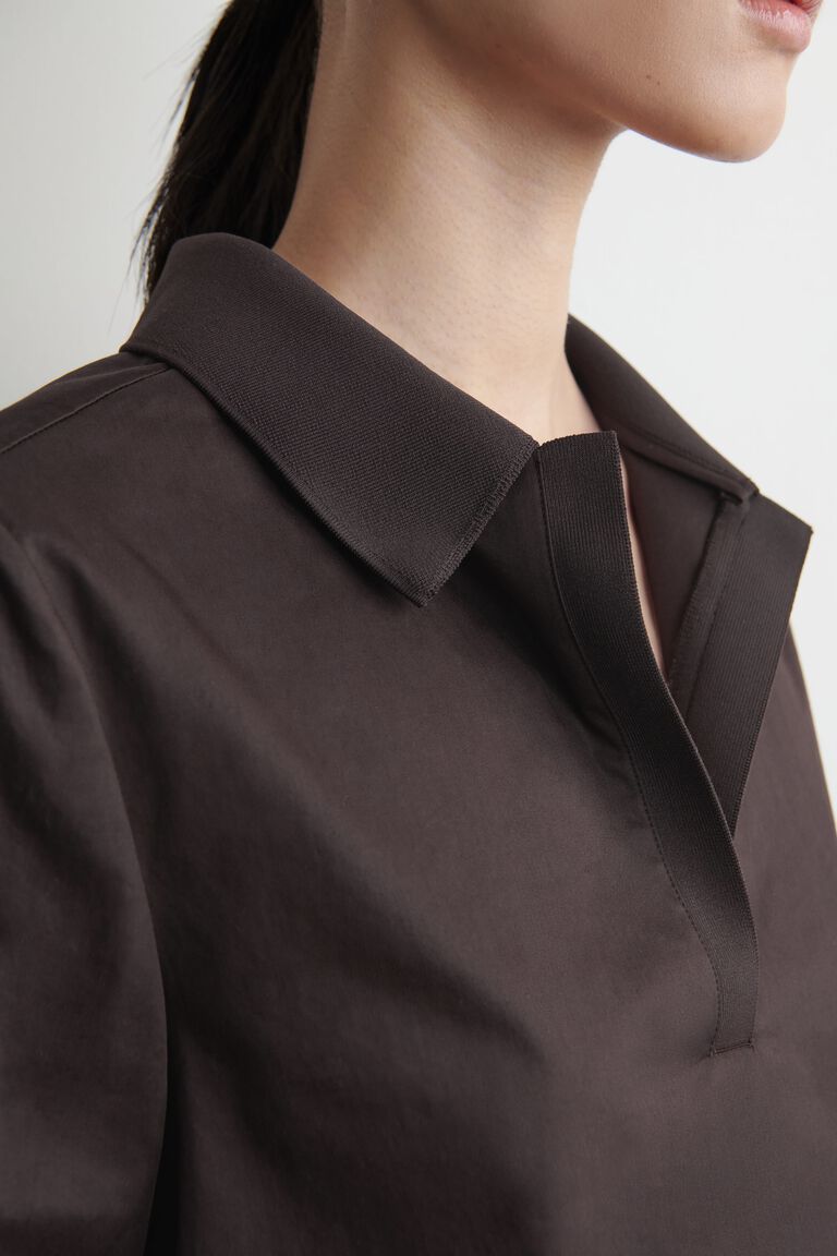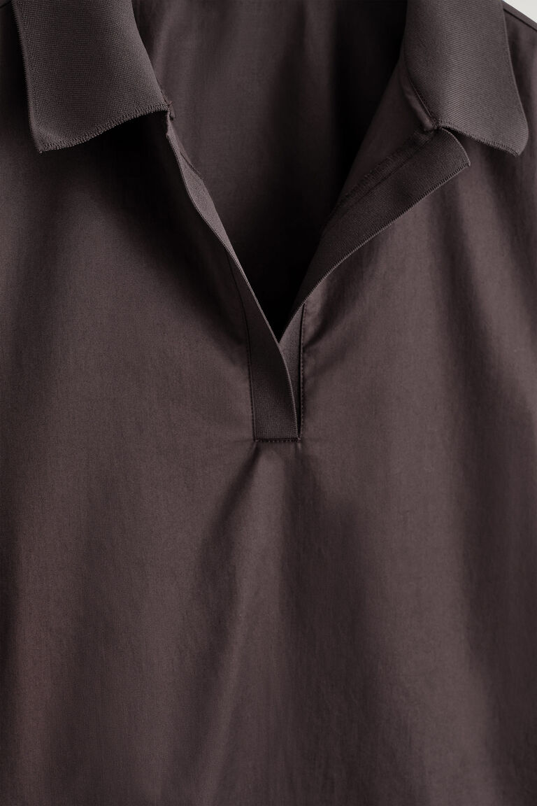 A modern take on classic shirting, this piece is woven from pure cotton and offered in a rich plum tone. It's cut in an effortless shape and finished with a ribbed polo collar that lends a relaxed yet refined look. Style it with wide-leg trousers for laid-back appeal.