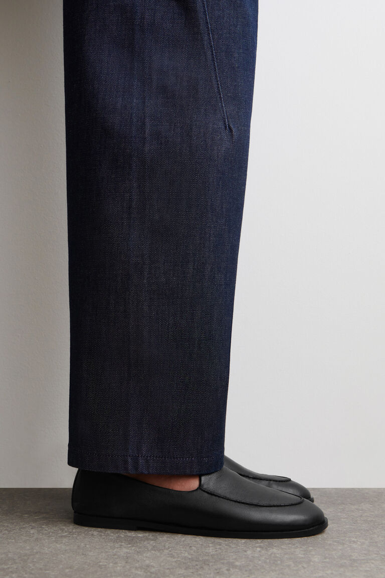 This season, the womenswear designers propose a studied take on a wardrobe classic: the leather loafer. This minimal pair is crafted from premium hide in a timeless black hue and set on slim soles for a streamlined finish. They style equally as well with smart and casual looks.