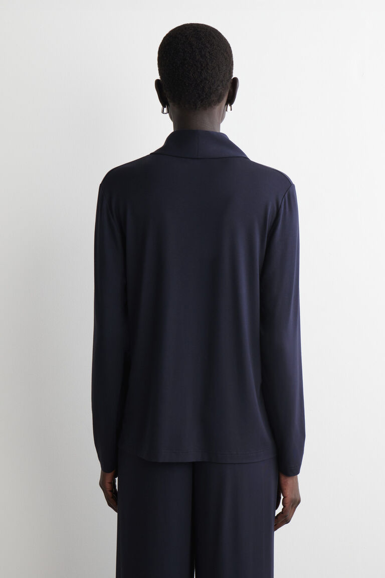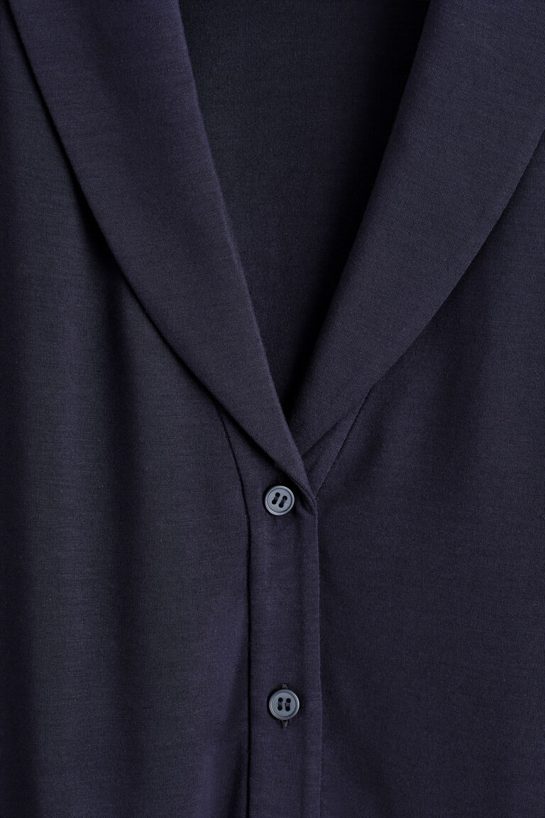 Refined layering is a key tenet of the autumn/winter wardrobe. Crafted from soft modal jersey, this modern cardigan has a shawl collar that nods to tailoring and a relaxed silhouette makes it effortlessly wearable. Style it with nothing underneath for a barely-there look or wear it with a crisp shirt for a preppy spin.
