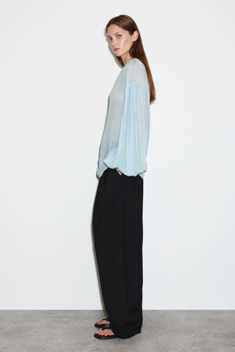 - SHEER BALLOON-SLEEVE BLOUSE