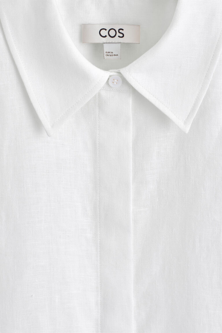 This boxy shirt proposes a laid-back take on summer dressing. Cut in an oversized shape, it's crafted from naturally lightweight linen and designed with a pointed collar and short sleeves.