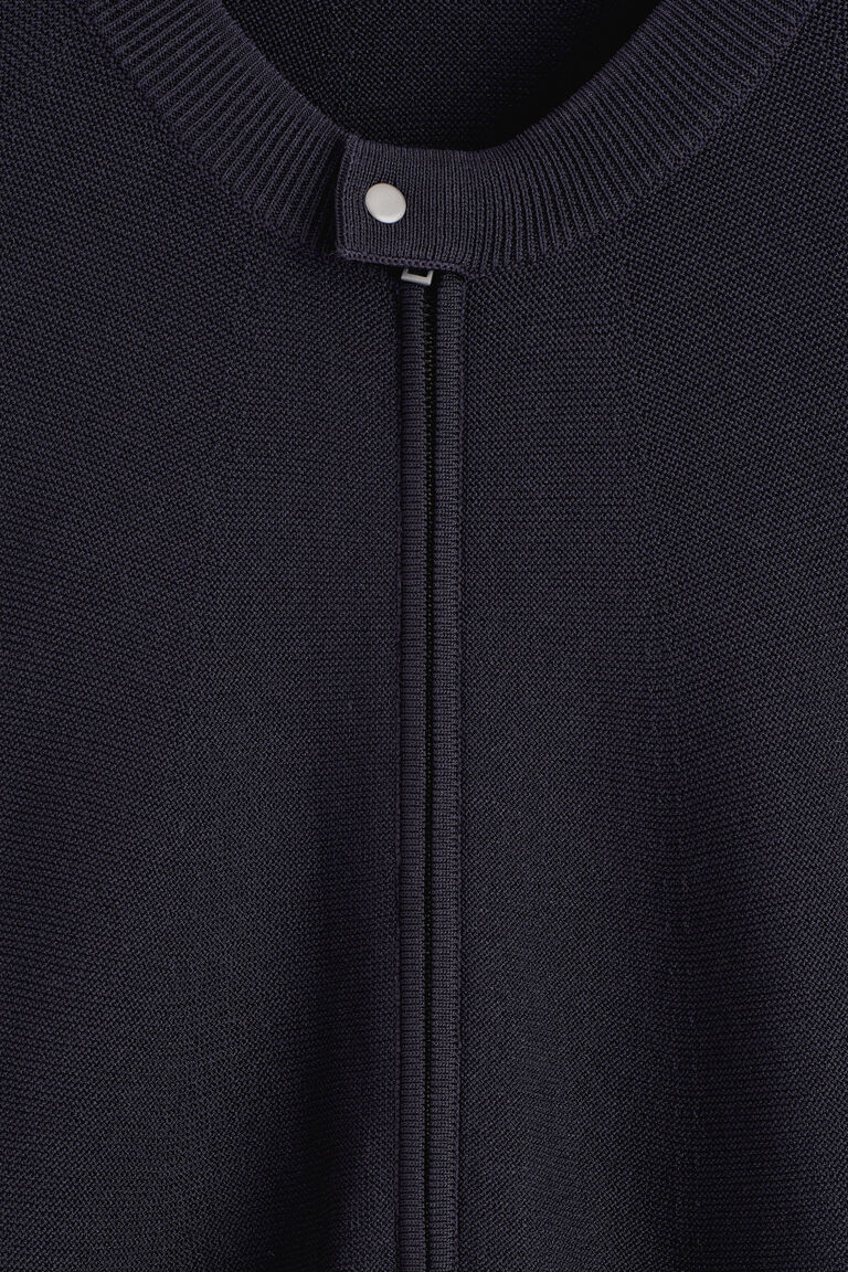 A refined wardrobe staple, this zip-up jacket is knitted in a tactile linkstitch and constructed for a seamless finish. The crew neck is finished in a racer-style that secures with a silver-tone press stud, while the cuffs and hem are ribbed for structure.
