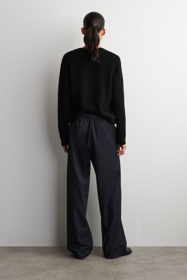 This season, the womenswear designers explore the effortless appeal of denim. Washed a deep-indigo hue, these drawstring trousers are made from organic cotton with a touch of TENCEL™ Lyocell to create a fluid drape. They're cut with straight legs and feature an elasticated waist and slip pockets. Style them with the matching top.
