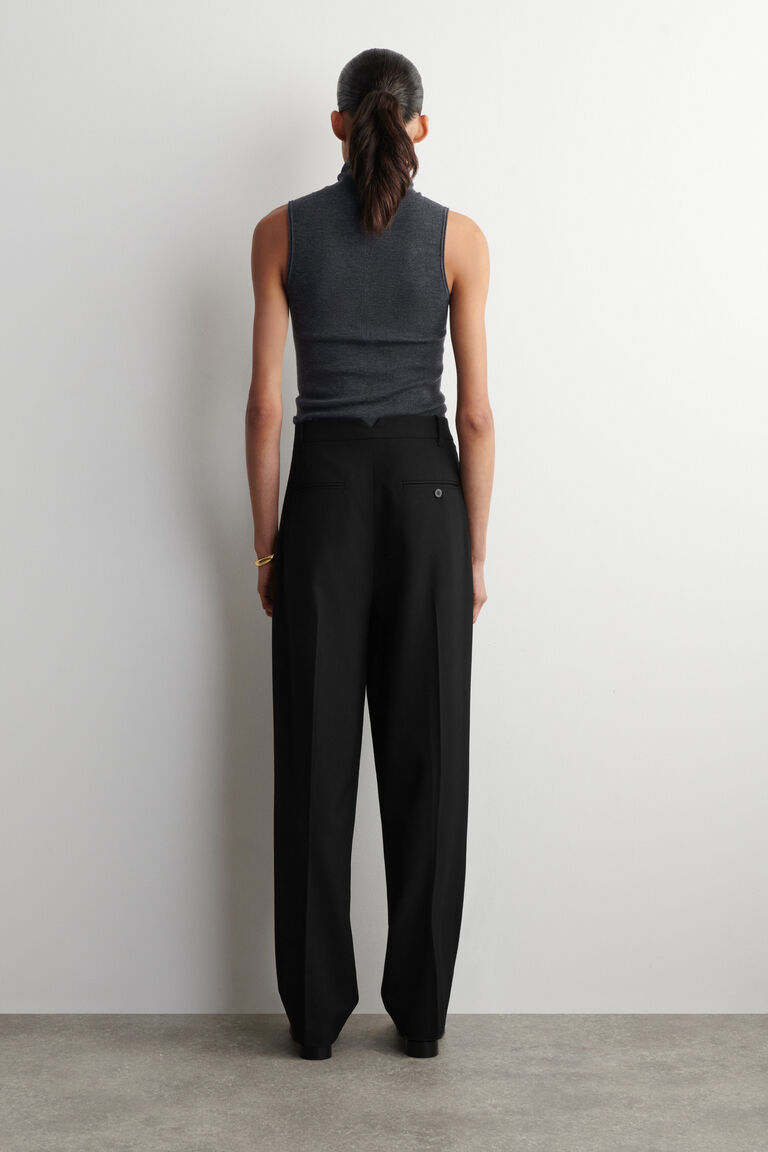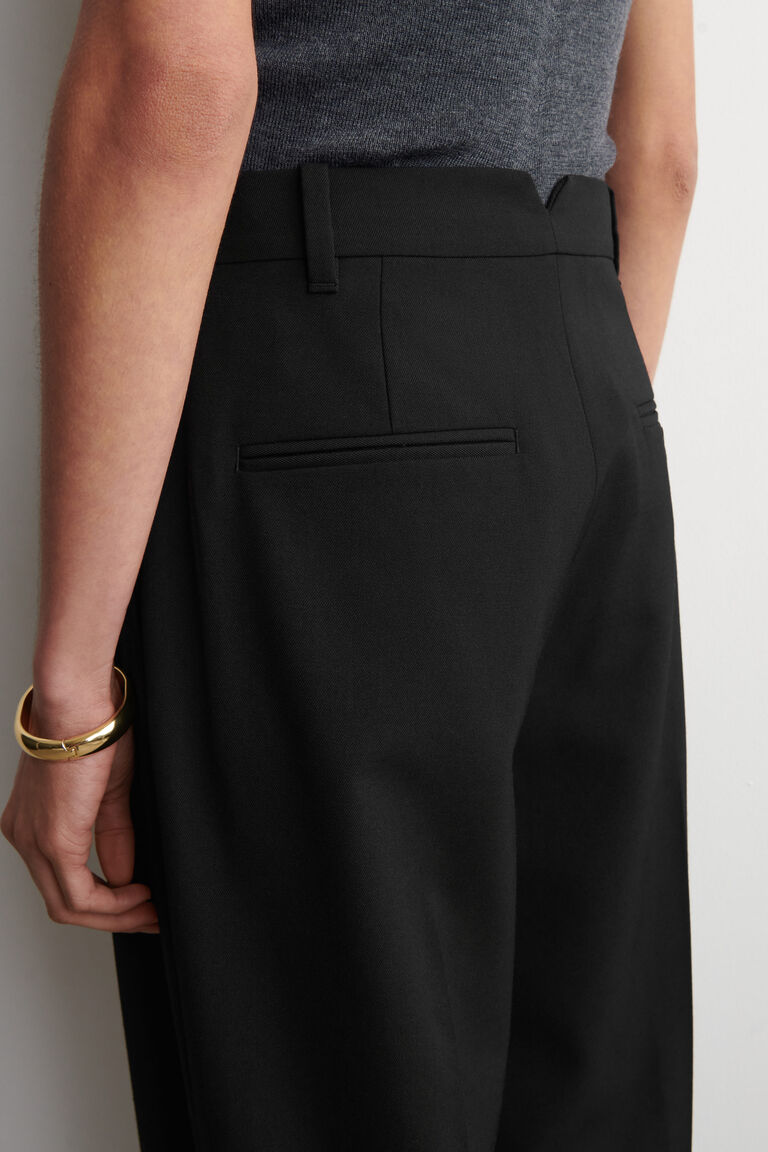 Refined tailoring is a foundation of the intentional wardrobe. Crafted from a merino-wool blend, these trousers are cut in a tapered shape and designed with a high-rise waist and pleating for subtle volume.