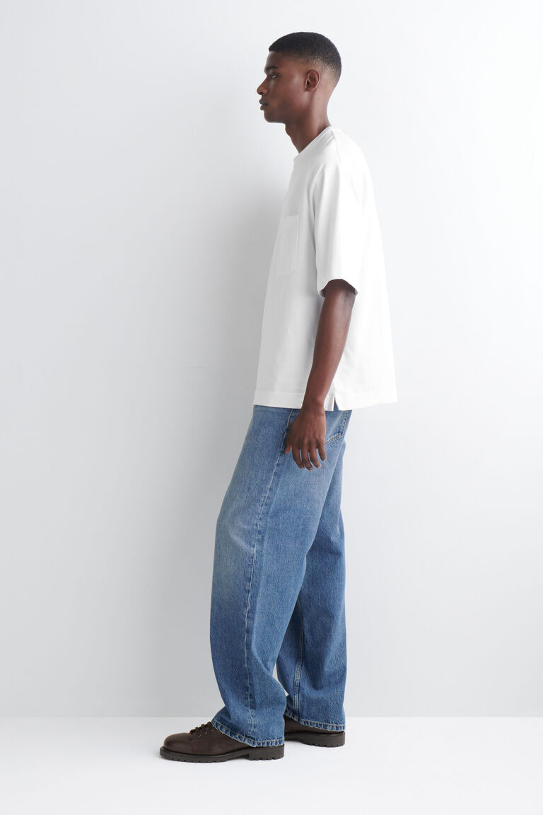 The oversized T-shirt is a mainstay of the COS wardrobe. This piece is crafted from soft cotton in a substantial 320gsm jersey and has a patch pocket at the chest. Style it with denim for a laid-back look.