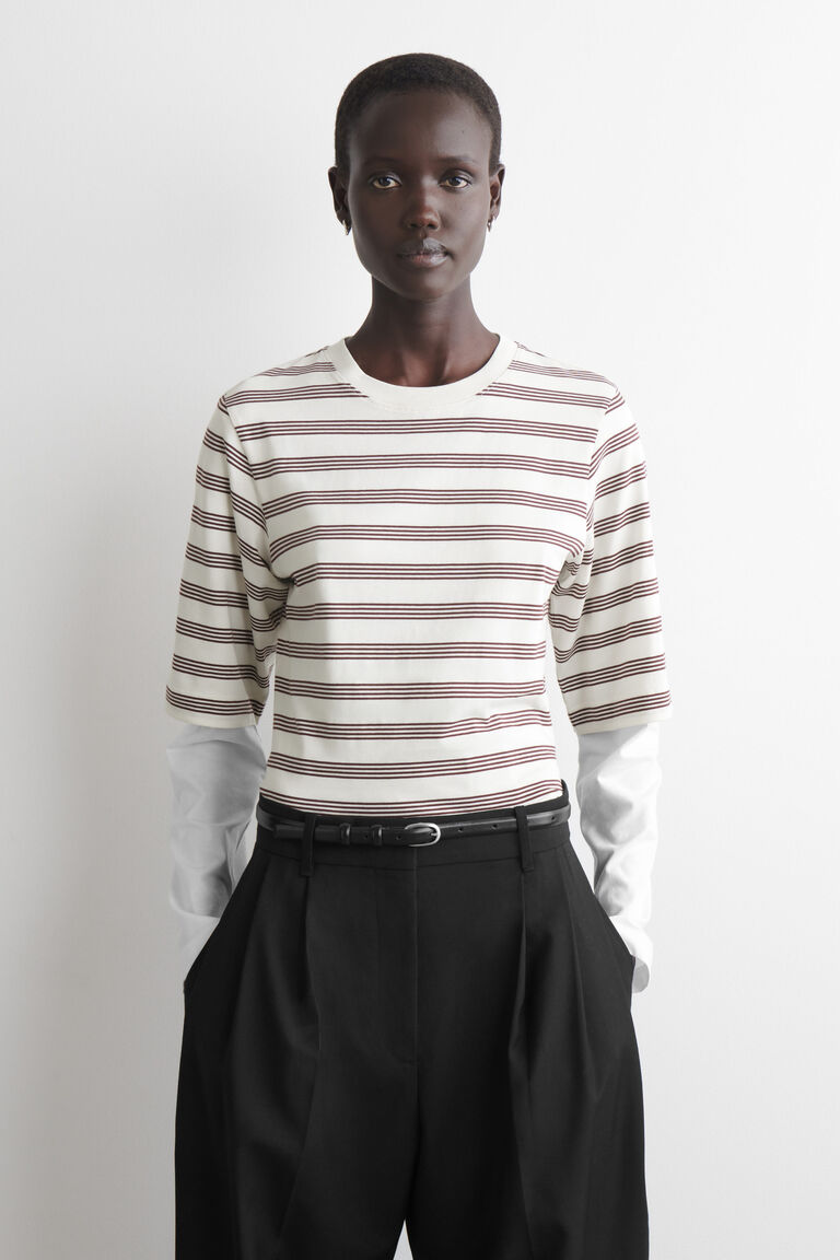 The COS T-shirt is designed for the rhythm of modern life. Cut in a classic shape, this piece is crafted from 160gsm organic-cotton jersey in a buttermilk tone and features a ribbed crew neck and short sleeves.
