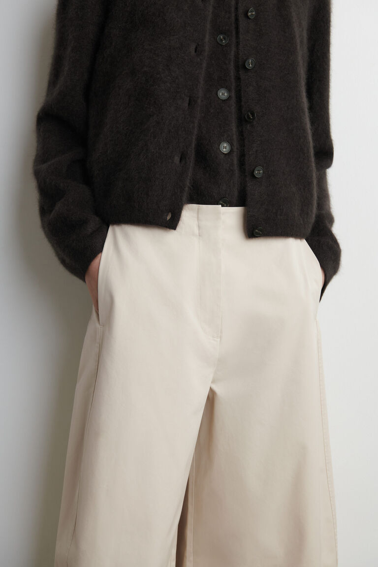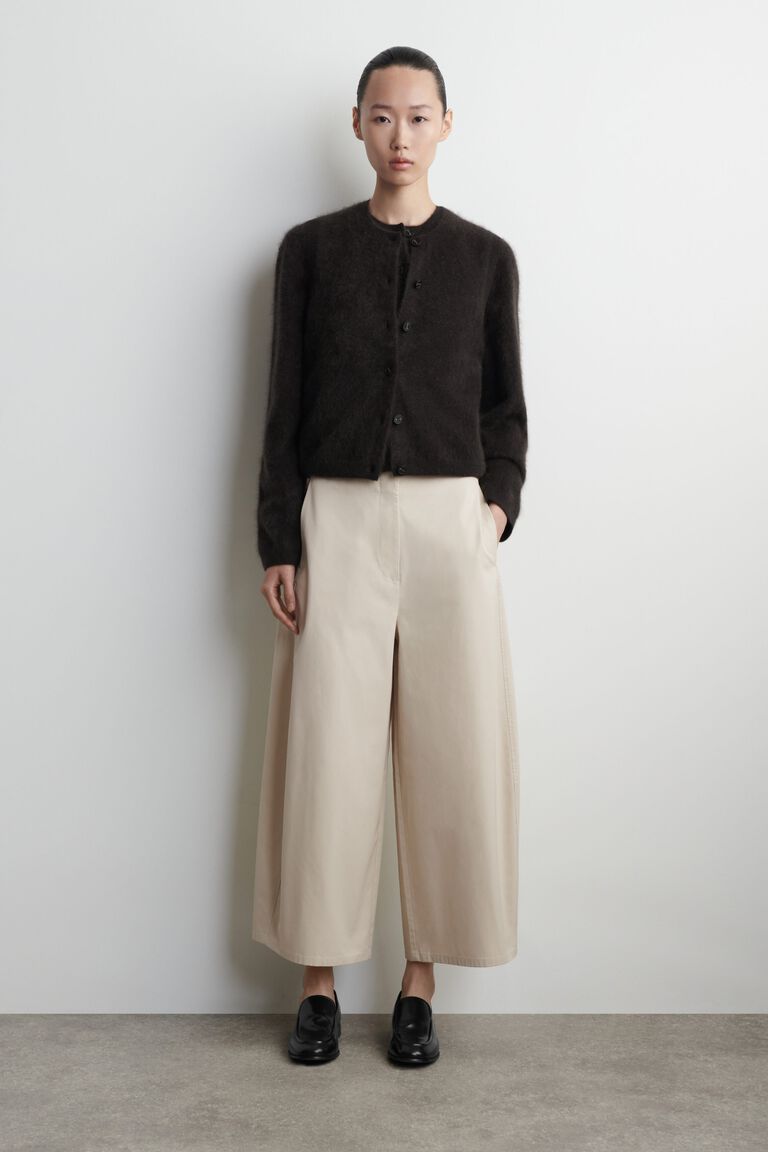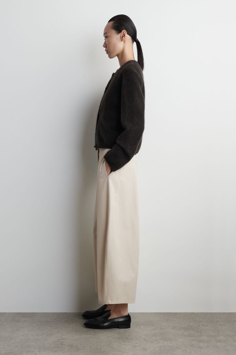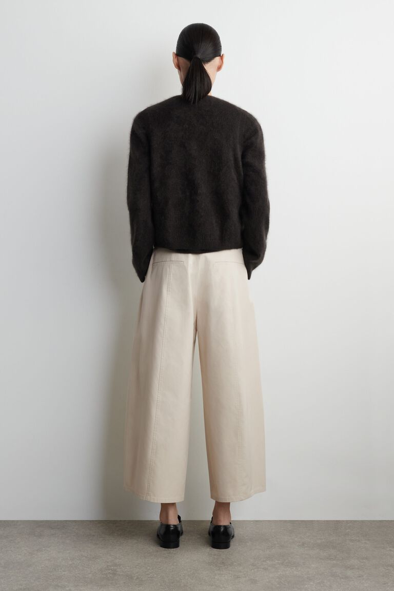 These modern trousers are cut in a sculptural barrel-leg shape and made from soft, breathable cotton. They're designed with several pockets, a clean hook-and-bar closure and seams that lend subtle structure.