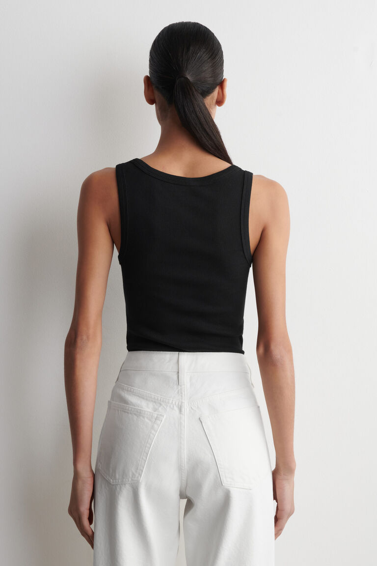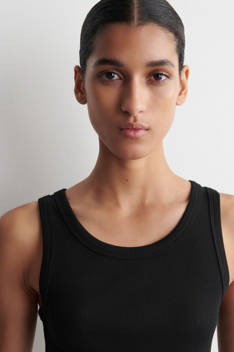 The womenswear team present a refined take on the classic tank. It's crafted from ribbed organic cotton, chosen for its exceptionally soft handle, and shaped with a rounded neckline. Style it alone or layered under shirts and blazers.