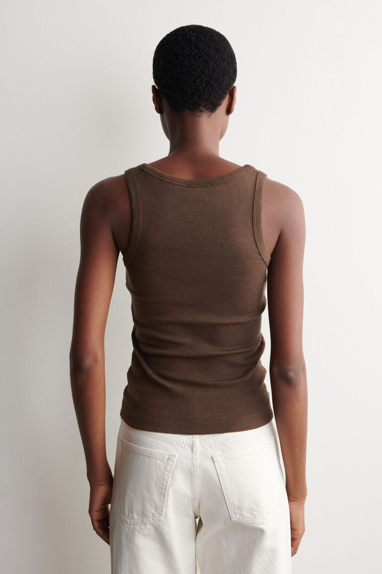 The womenswear team present a refined take on the classic tank. It's crafted from ribbed organic cotton, chosen for its exceptionally soft handle, and shaped with a rounded neckline. Style it alone or layered under shirts and blazers.