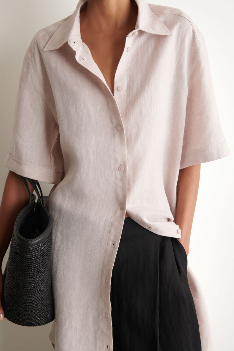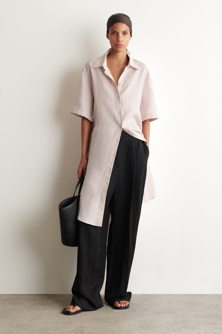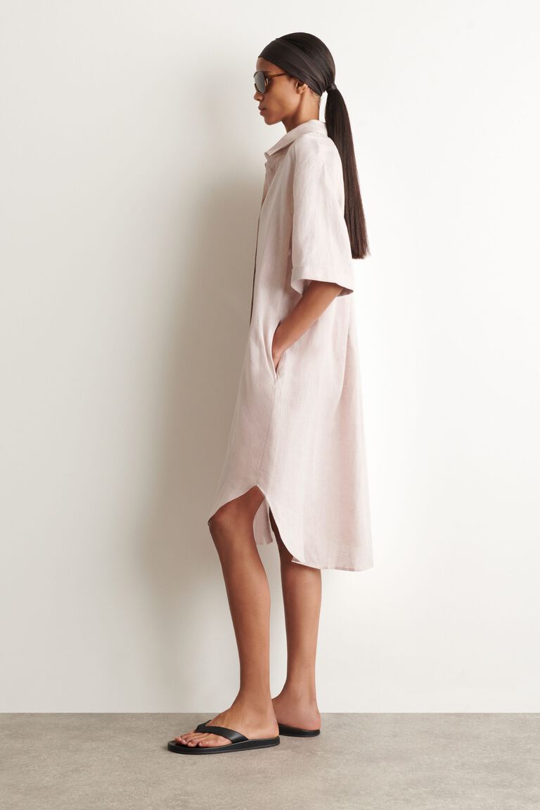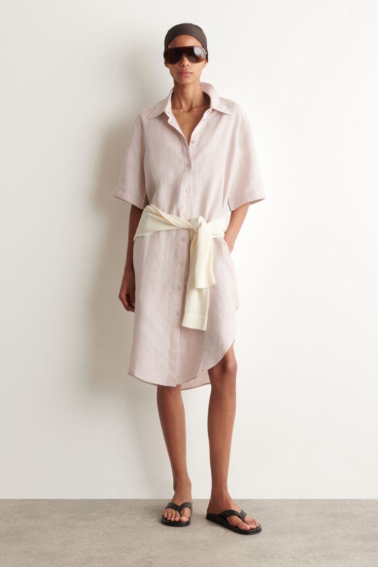SHORT-SLEEVED LINEN SHIRT DRESS