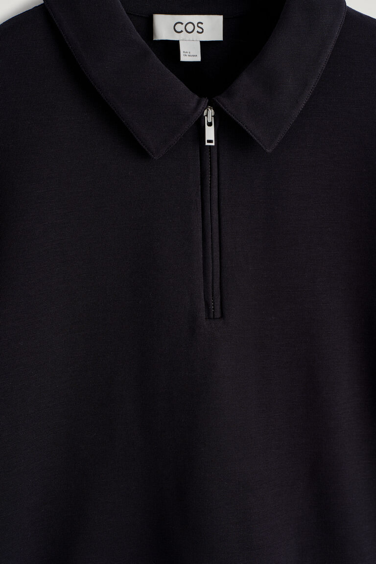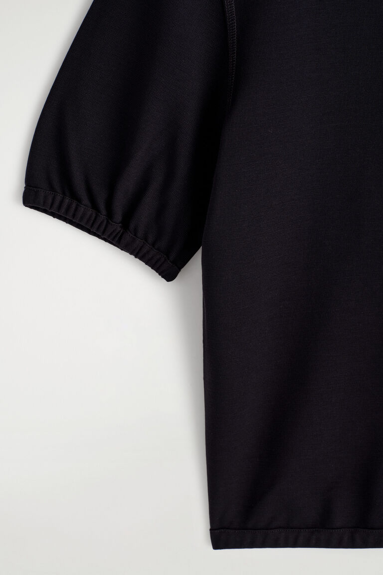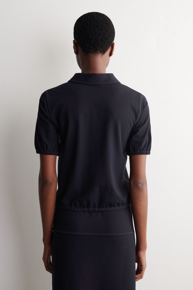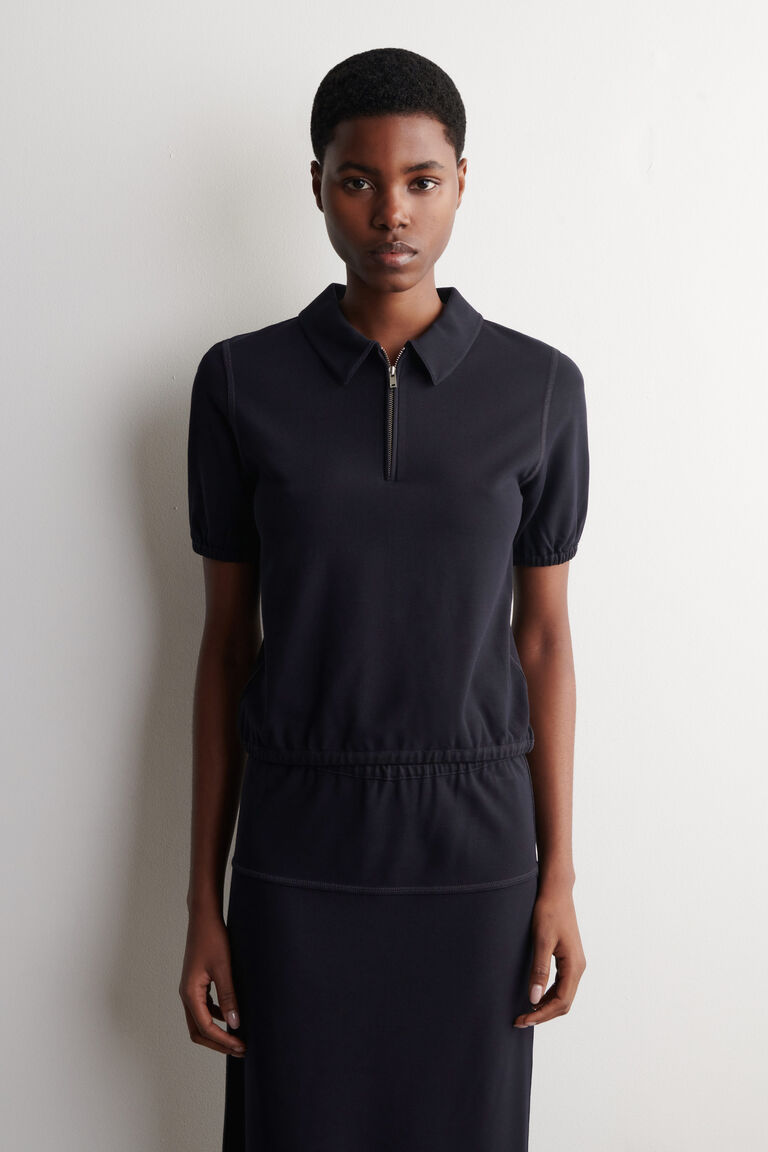 Renewing leisurewear codes, this modern polo is made from soft jersey and finished with a silver-tone zip. Gathered detailing at the cuffs and hem lend subtle shape and texture.