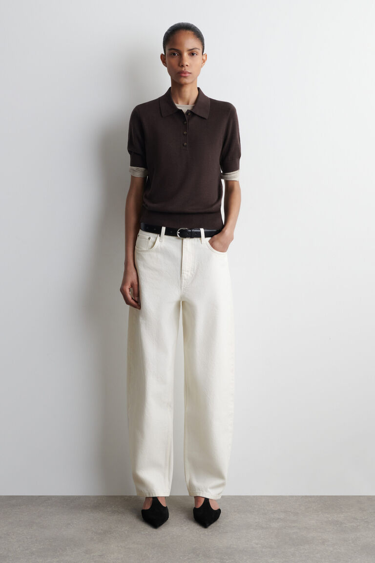 Shrunken silhouettes imbue the classic polo shirt with a '90s mood. This piece is knitted from lightweight lyocell with wool for a luxuriously soft hand feel and has a pointed collar and finely ribbed trims.