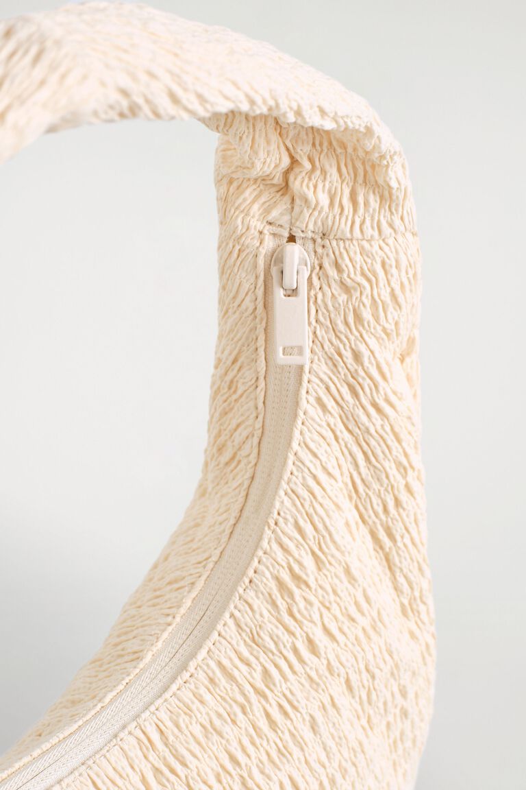 Rich in texture, the smocked shoulder bag is defined by rows of ruching and has a curved shape that rests on the shoulder. The zip closure keeps essentials secure, while the enduring black tone is effortless to style.