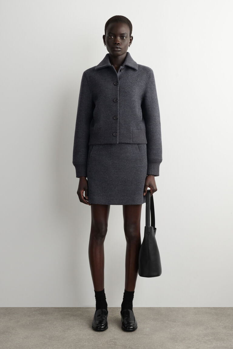 - RIBBED-COLLAR BOILED MERINO WOOL JACKET