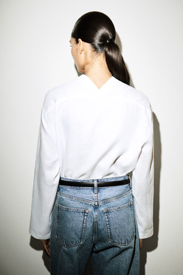 - BUTTON-DETAIL LINEN V-NECK SHIRT
