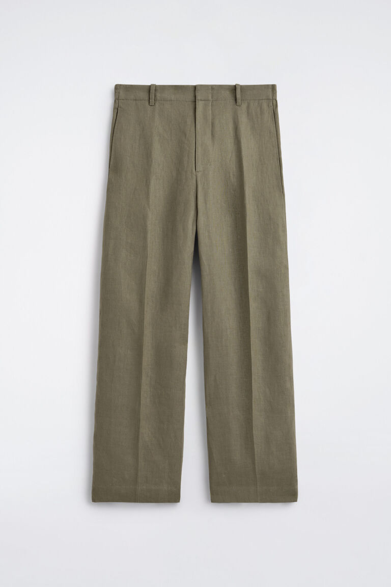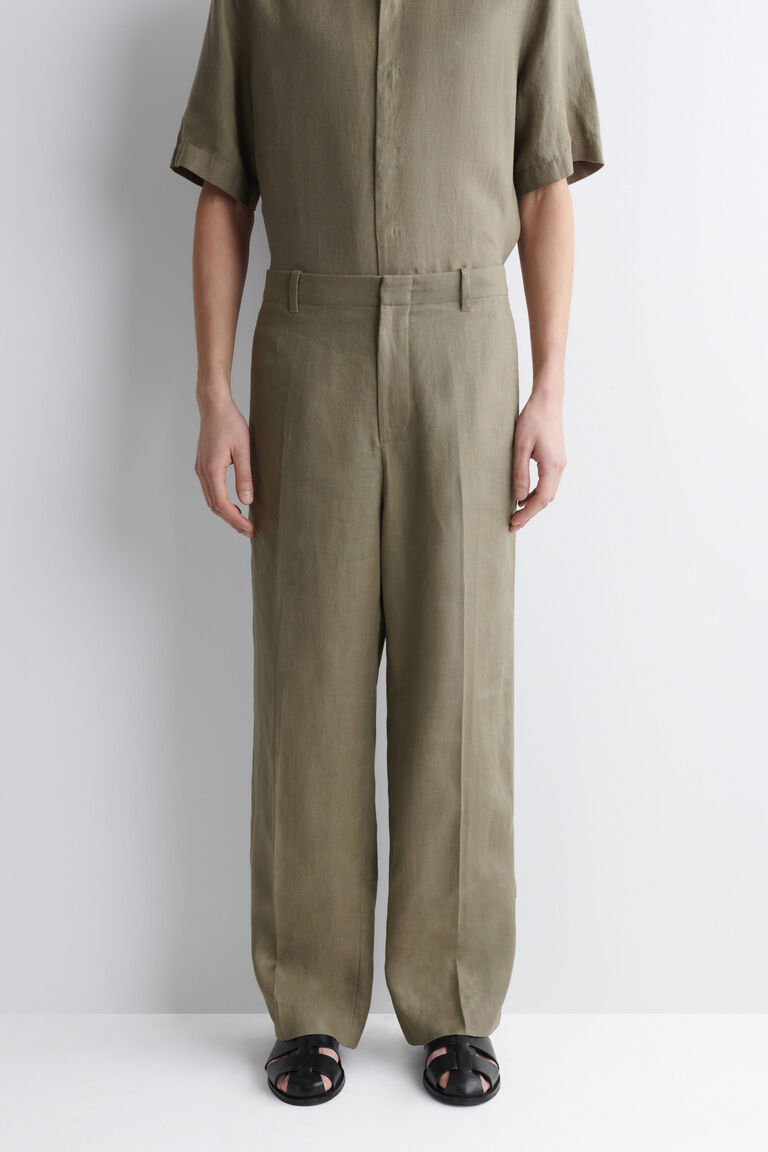 LINEN RELAXED-FIT STRAIGHT-LEG TROUSERS
