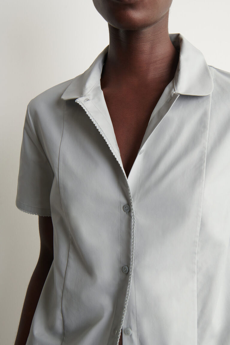 Channelling a modern femininity, this short-sleeved shirt is designed with a softly curved collar and delicate picot-trimmed placket. It's crafted from crisp cotton-poplin in an enduring white tone that's effortless to style.