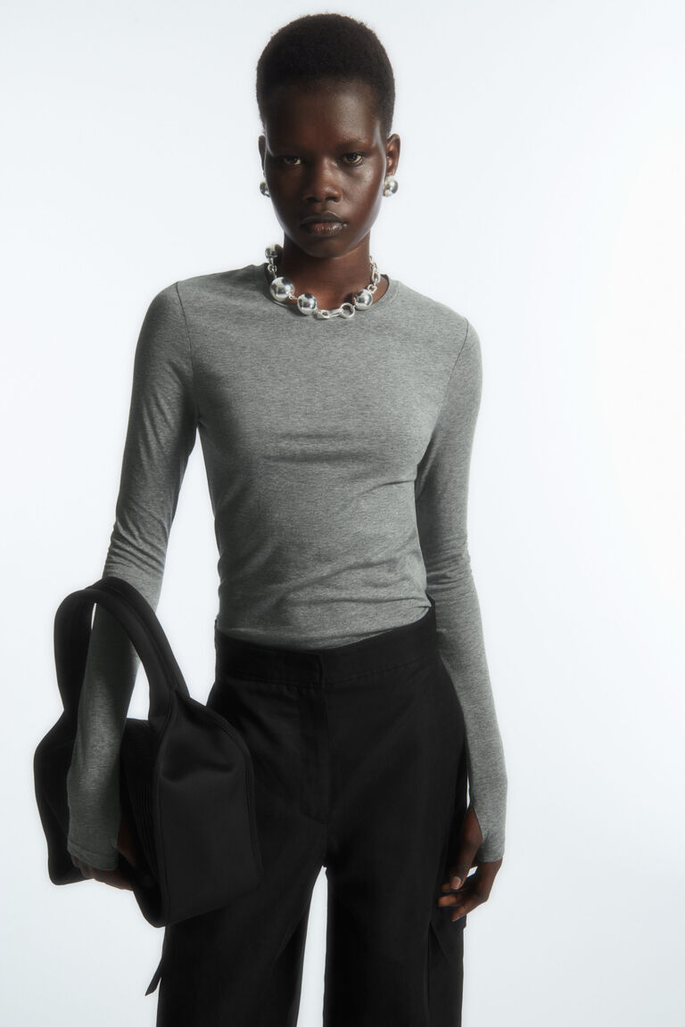 - เสื้อแขนยาวผ้าเนื้อบางเบาทรงสลิม