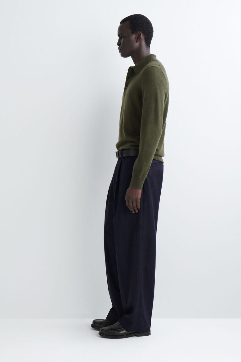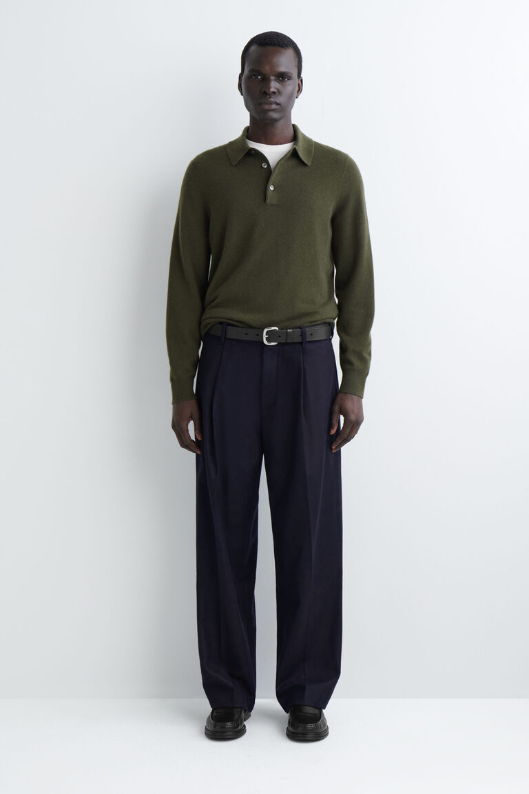 เสื้อโปโลเหนือกาลเวลาตัวนี้คืออีกหนึ่งไอเท็มพรีเมียมสำหรับตู้เสื้อผ้า นำเสนอในสีกรมท่าอเนกประสงค์ ถักทออย่างเชี่ยวชาญจากผ้าแคชเมียร์ Good Cashmere Standard® บริสุทธิ์ที่นุ่มสบายเป็นพิเศษและให้ความอบอุ่นตามธรรมชาติ สาบเสื้อครึ่งกระดุมมอบตัวเลือกในการจัดสไตล์ที่หลากหลาย ในขณะที่ขอบผ้าริบช่วยเสริมโครงสร้างให้กับทรงสบายๆ