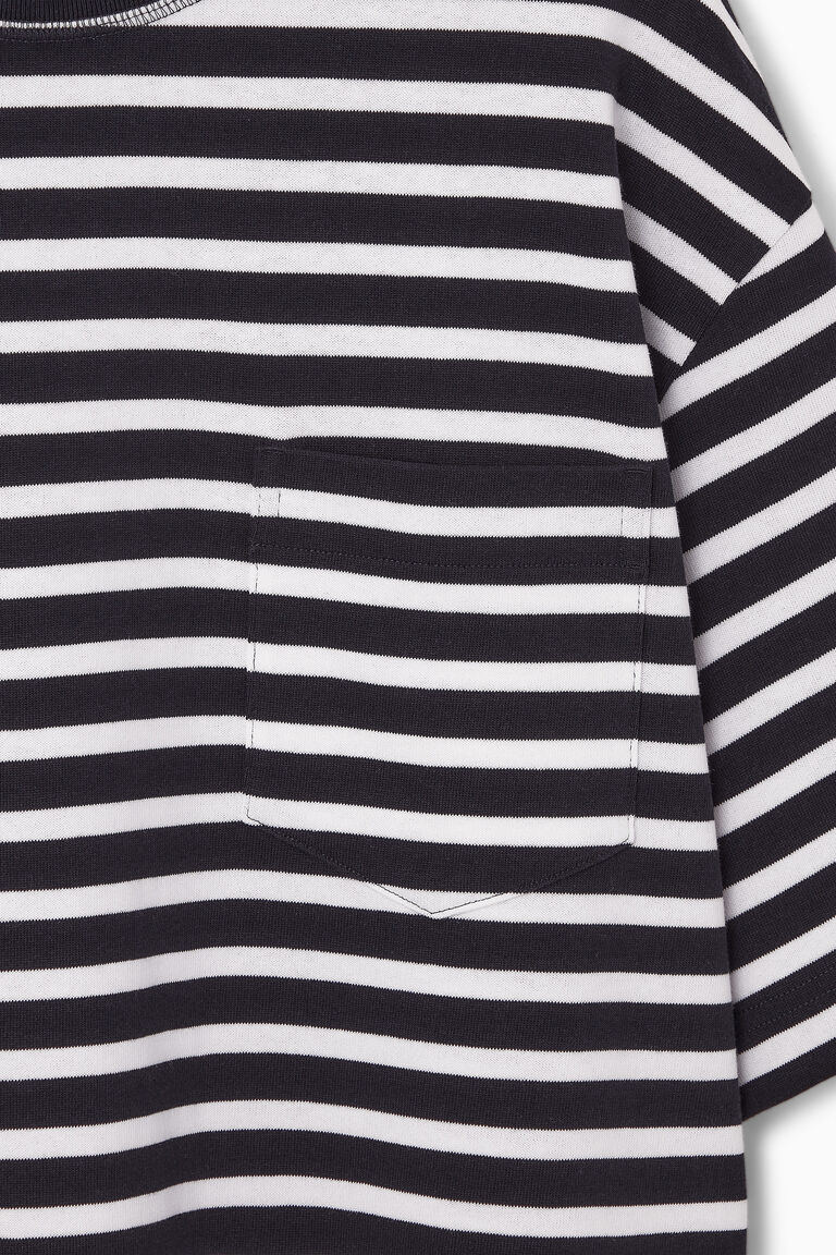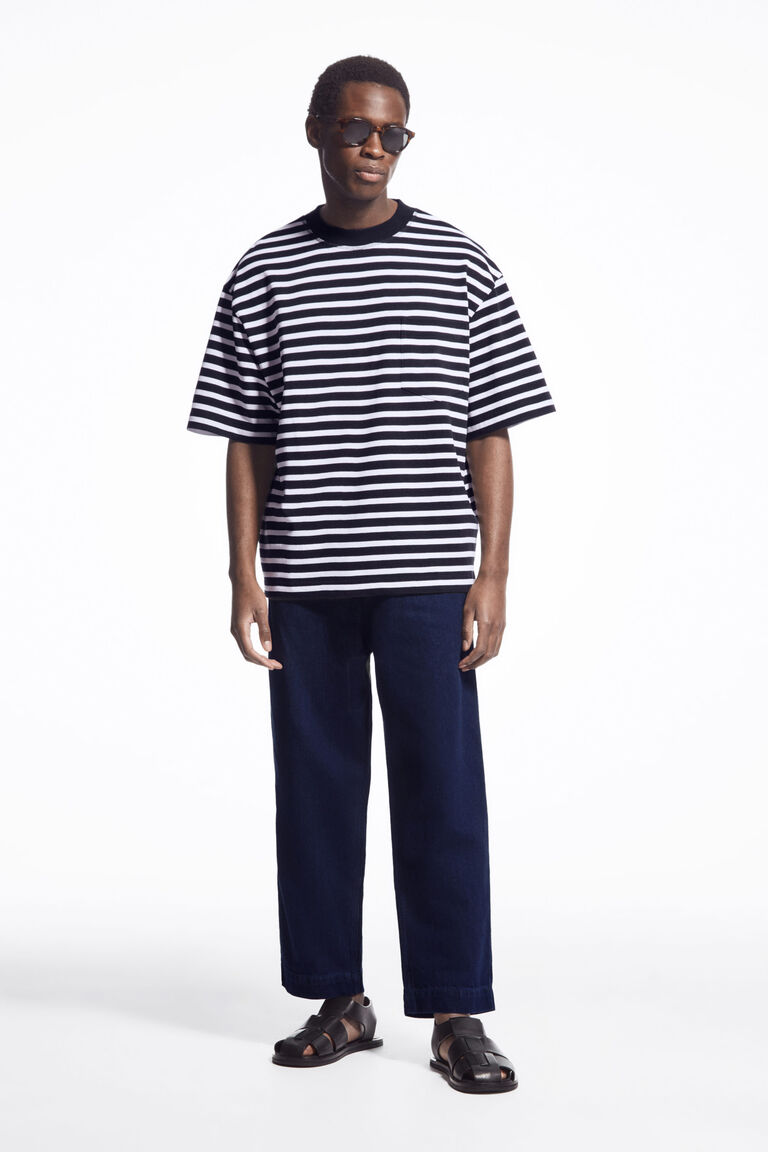 เสื้อยืดลายทาง Heavy Duty เหนือกว่าเสื้อยืดผ้าเจอร์ซีย์คลาสสิกไปอีกขั้น ด้วยน้ำหนักถึง 250 แกรม ผลิตจากผ้าฝ้ายพรีเมียมที่หนา อุ่น และคงรูปทรงแบบ Boxy ได้ดี ออกแบบด้วยคอกลม ไหล่ตก และกระเป๋าแปะแบบลำลองที่หน้าอก – เหมาะสำหรับเกี่ยวแว่นกันแดด.