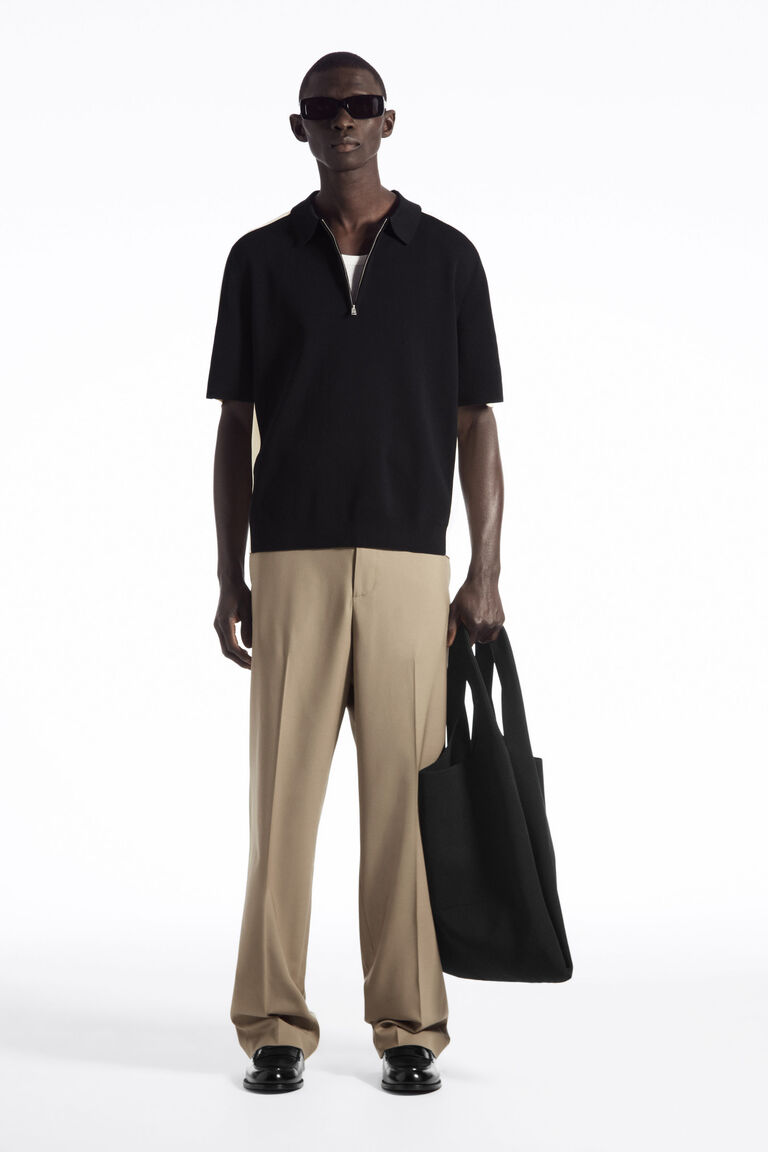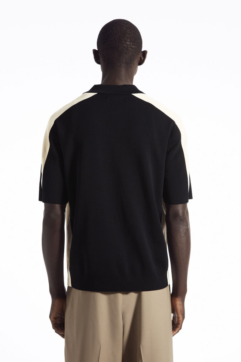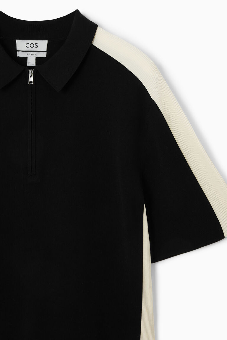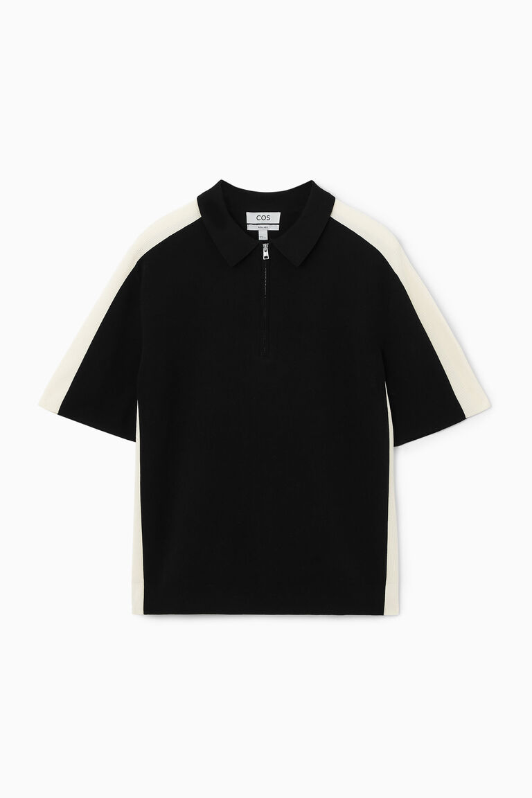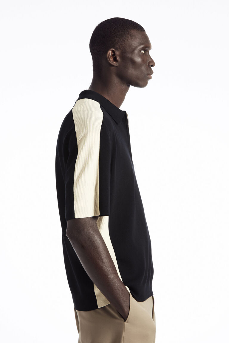 เสื้อโปโลแขนสั้นตัวนี้ ถักทอจากผ้าคอตตอนเนื้อนุ่ม ออกแบบด้วยแผงผ้าริบสีตัดกันที่ด้านข้าง พร้อมคอเสื้อถัก Milano แขนสั้น และขอบแบบ Clean-cast ออกแบบในทรงมินิมอล พร้อมสาบเสื้อแบบซิปซ่อนและชายเสื้อตรง.