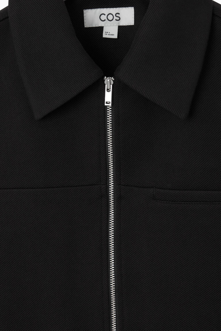 - เสื้อแจ็กเก็ตครอป ผ้าทวิล มีซิปรูด